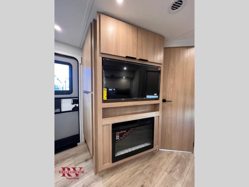 Have everything you need in a compact and well equipped travel trailer. After entering the travel trailer you will find neat places and storage to have everything in place. There is a galley kitchen with molded fiberglass countertops providing unmatched durability. When wanting a perfect place to relax you can enjoy watching TV in the booth dinette or enjoy movies just like at the theaters in the theater seating. If you want to have your own private space you will love the bedroom that has access to a conveniently placed bathroom with a modern radius shower. The bedroom also has a closet to store all your clothes and keep them wrinkle-free!