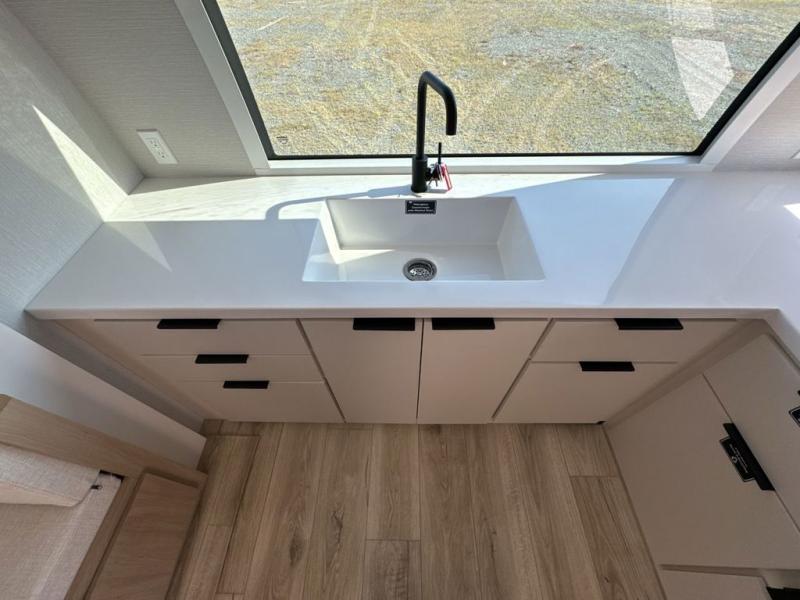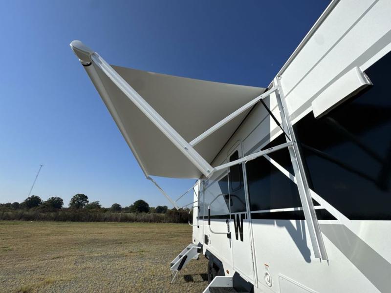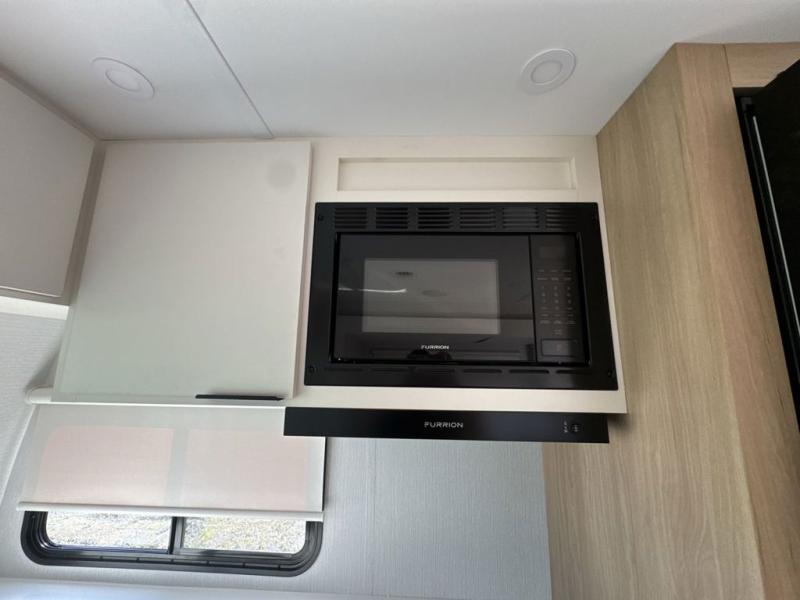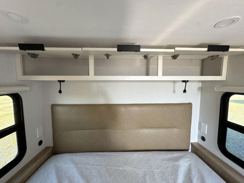 With any Thrive travel trailer by Winnebago, you can camp with functionality, comfort, and convenience! The large front viewing window with strike guard will be the first thing that catches your eye, and the fiberglass sidewalls with Azdel Onboard provide a durable trailer made to last. There is also an exterior ladder, along with front radius profile lights, power stabilizer jacks, and a powered awning with LED lighting to name a few exterior features. You will stay powered up by the 30-amp power cord and 200-watt solar panel, plus there is a tankless water heater for endless hot showers. Inside, you'll love the custom Winnebago furniture, carpetless side outs, molded fiberglass countertops, and residential recessed ceiling lights to keep your space well lit!