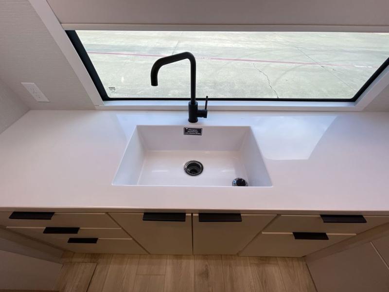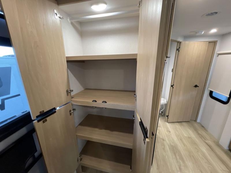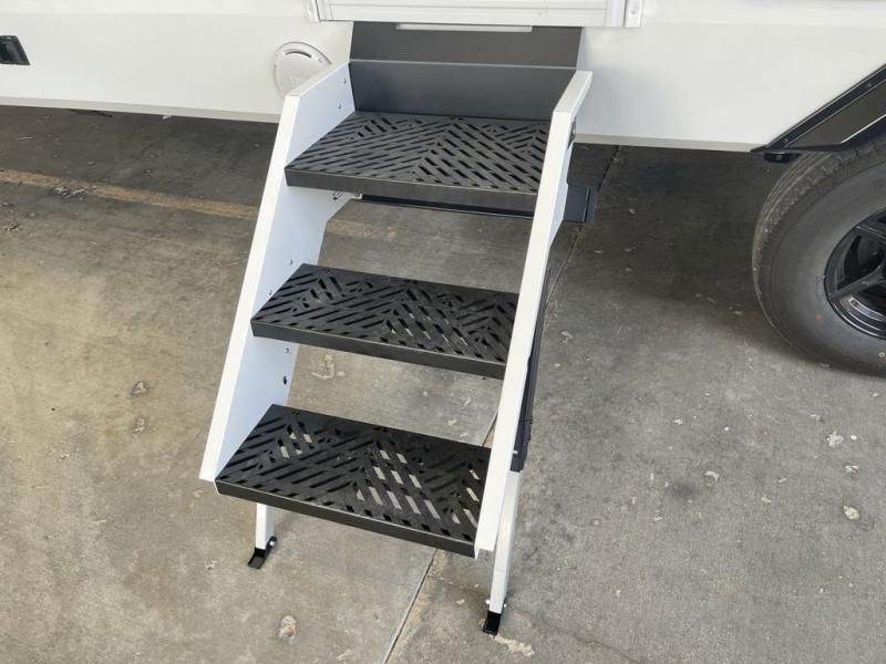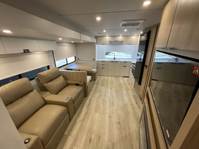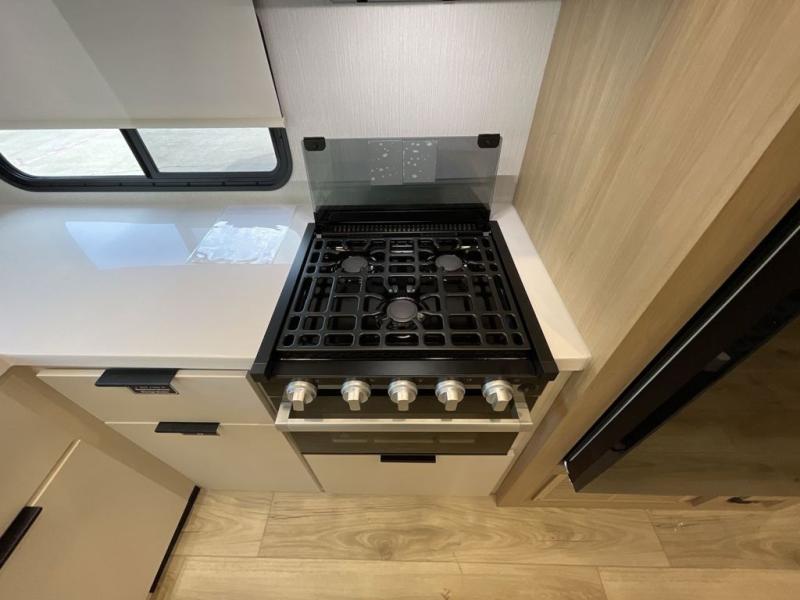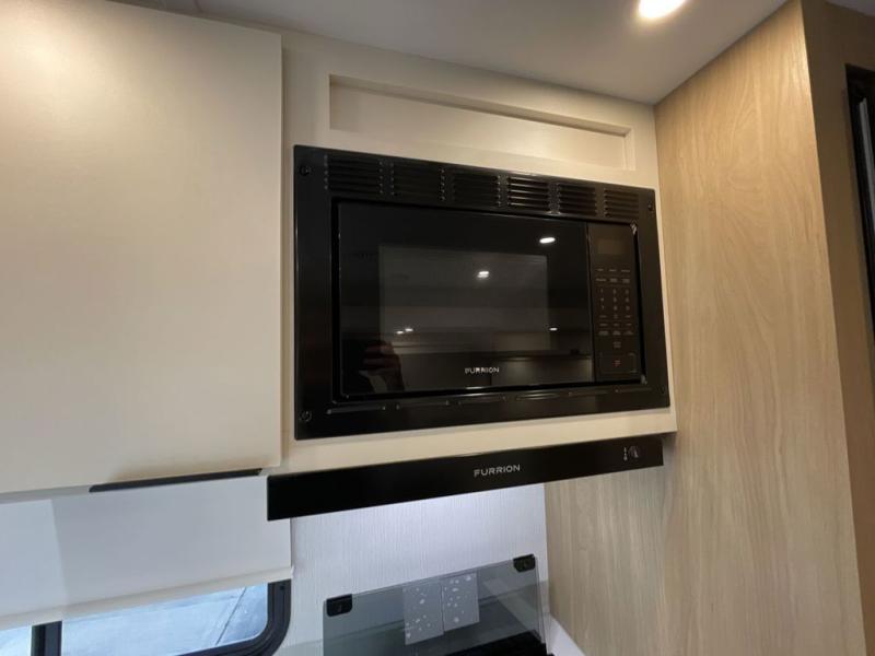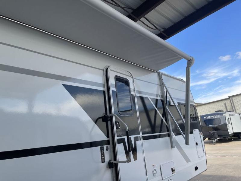 With any Thrive travel trailer by Winnebago, you can camp with functionality, comfort, and convenience! The large front viewing window with strike guard will be the first thing that catches your eye, and the fiberglass sidewalls with Azdel Onboard provide a durable trailer made to last. There is also an exterior ladder, along with front radius profile lights, power stabilizer jacks, and a powered awning with LED lighting to name a few exterior features. You will stay powered up by the 30-amp power cord and 200-watt solar panel, plus there is a tankless water heater for endless hot showers. Inside, you'll love the custom Winnebago furniture, carpetless side outs, molded fiberglass countertops, and residential recessed ceiling lights to keep your space well lit!