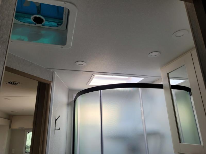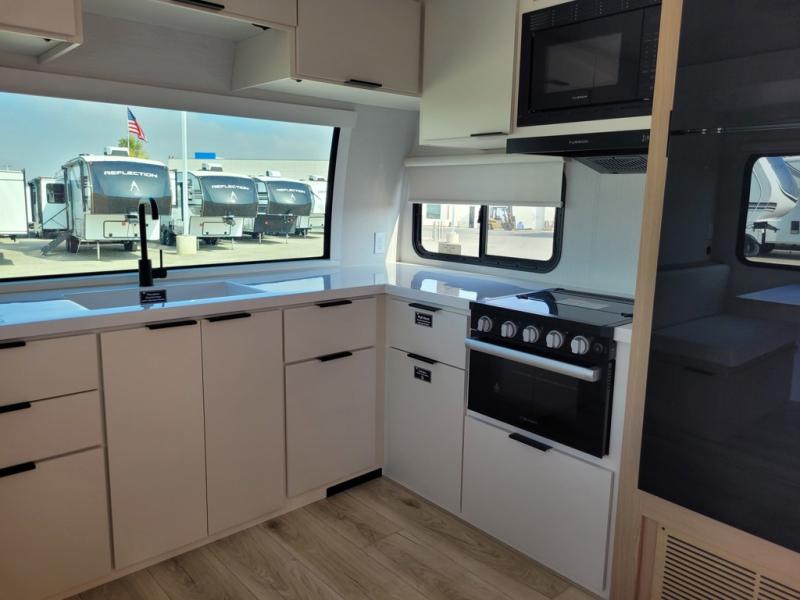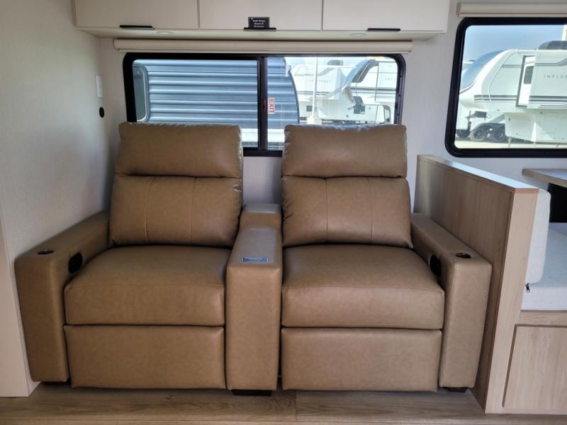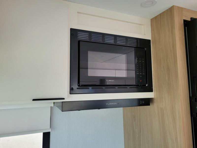 With any Thrive travel trailer by Winnebago, you can camp with functionality, comfort, and convenience! The large front viewing window with strike guard will be the first thing that catches your eye, and the fiberglass sidewalls with Azdel Onboard provide a durable trailer made to last. There is also an exterior ladder, along with front radius profile lights, power stabilizer jacks, and a powered awning with LED lighting to name a few exterior features. You will stay powered up by the 30-amp power cord and 200-watt solar panel, plus there is a tankless water heater for endless hot showers. Inside, you'll love the custom Winnebago furniture, carpetless side outs, molded fiberglass countertops, and residential recessed ceiling lights to keep your space well lit!