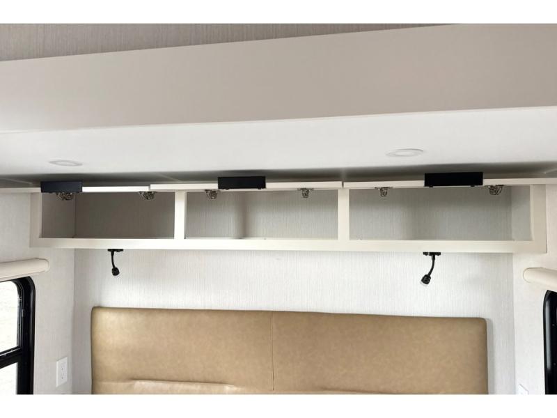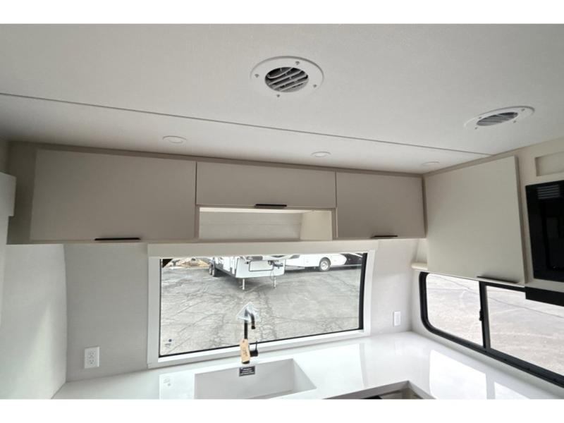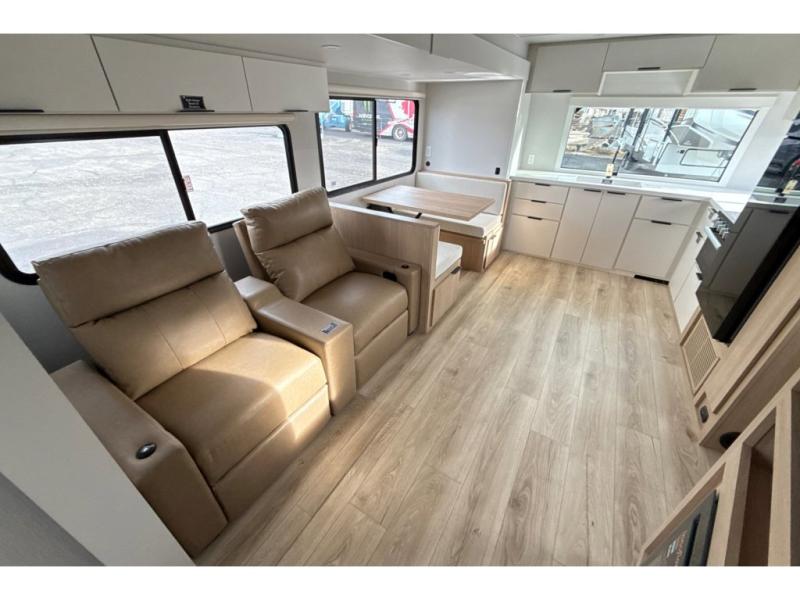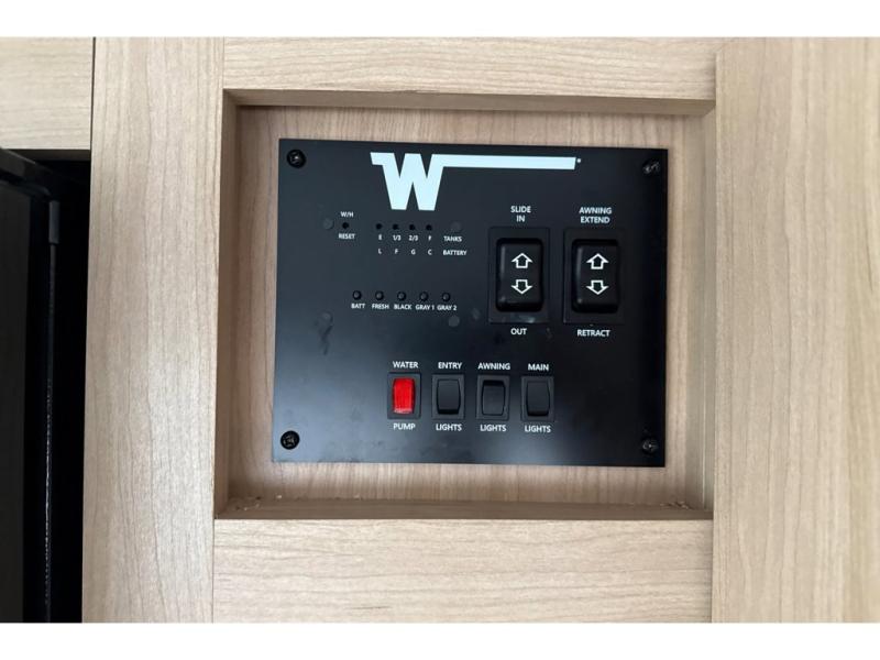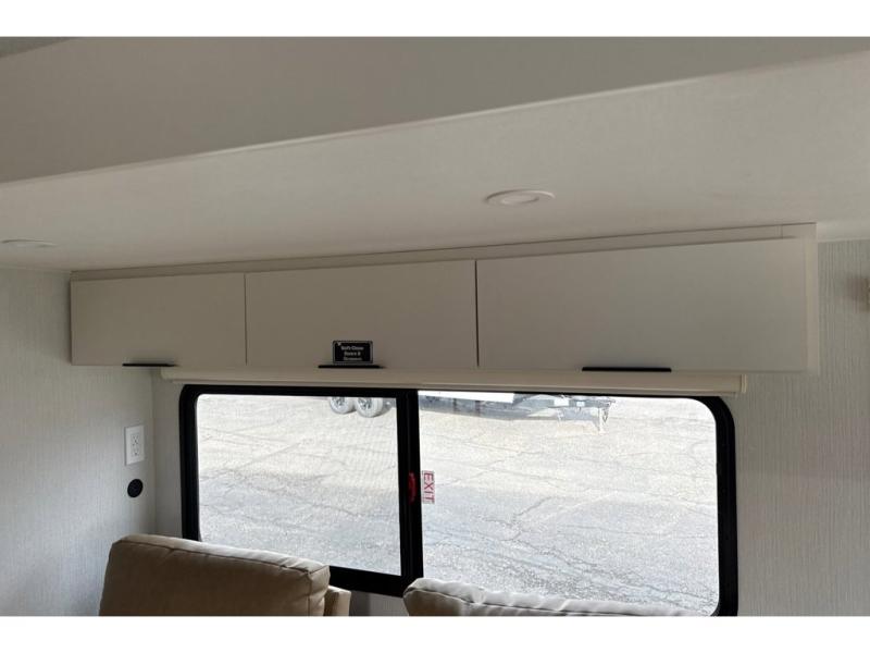 With any Thrive travel trailer by Winnebago, you can camp with functionality, comfort, and convenience! The large front viewing window with strike guard will be the first thing that catches your eye, and the fiberglass sidewalls with Azdel Onboard provide a durable trailer made to last. There is also an exterior ladder, along with front radius profile lights, power stabilizer jacks, and a powered awning with LED lighting to name a few exterior features. You will stay powered up by the 30-amp power cord and 200-watt solar panel, plus there is a tankless water heater for endless hot showers. Inside, you'll love the custom Winnebago furniture, carpetless side outs, molded fiberglass countertops, and residential recessed ceiling lights to keep your space well lit!