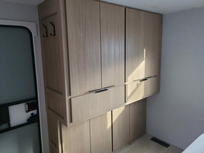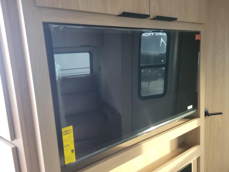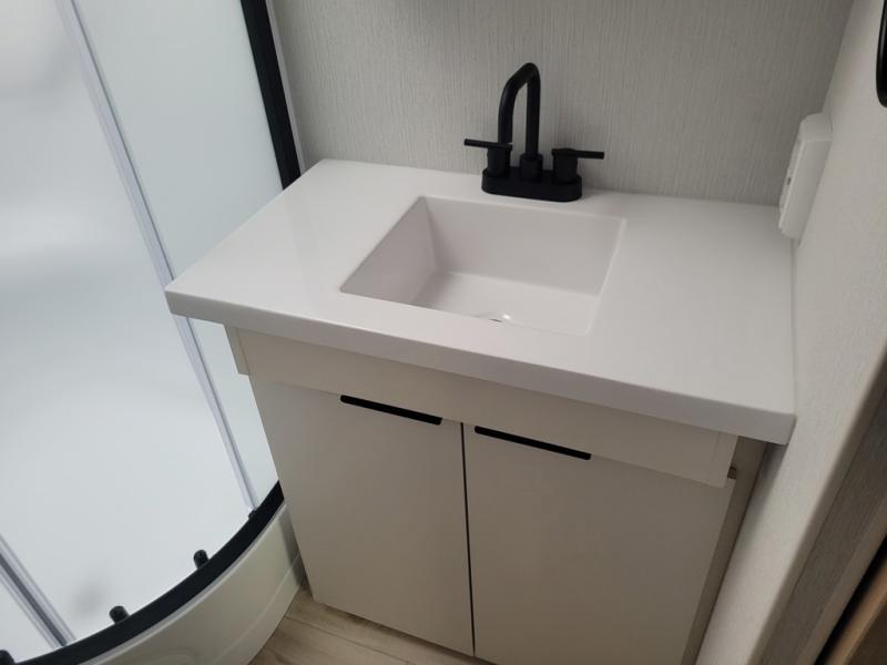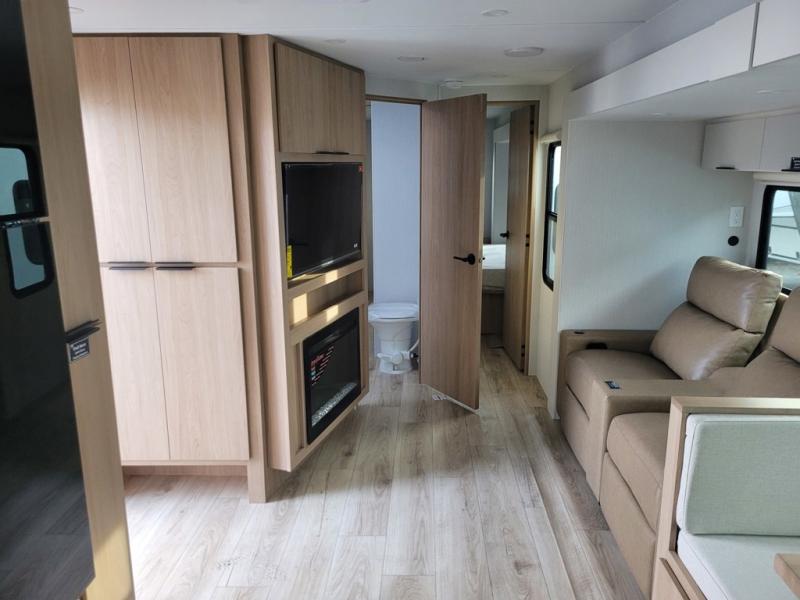 Have everything you need in a compact and well equipped travel trailer. After entering the travel trailer you will find neat places and storage to have everything in place. There is a galley kitchen with molded fiberglass countertops providing unmatched durability. When wanting a perfect place to relax you can enjoy watching TV in the booth dinette or enjoy movies just like at the theaters in the theater seating. If you want to have your own private space you will love the bedroom that has access to a conveniently placed bathroom with a modern radius shower. The bedroom also has a closet to store all your clothes and keep them wrinkle-free!
