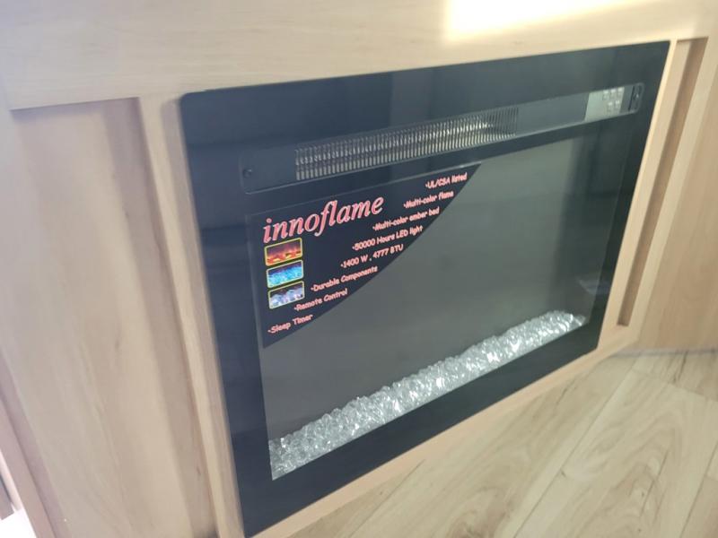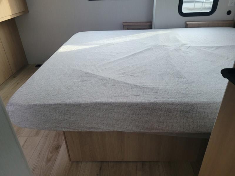 With any Thrive travel trailer by Winnebago, you can camp with functionality, comfort, and convenience! The large front viewing window with strike guard will be the first thing that catches your eye, and the fiberglass sidewalls with Azdel Onboard provide a durable trailer made to last. There is also an exterior ladder, along with front radius profile lights, power stabilizer jacks, and a powered awning with LED lighting to name a few exterior features. You will stay powered up by the 30-amp power cord and 200-watt solar panel, plus there is a tankless water heater for endless hot showers. Inside, you'll love the custom Winnebago furniture, carpetless side outs, molded fiberglass countertops, and residential recessed ceiling lights to keep your space well lit!