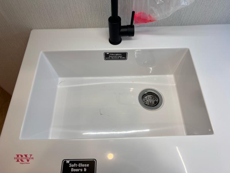 With any Thrive travel trailer by Winnebago, you can camp with functionality, comfort, and convenience! The large front viewing window will be the first thing that catches your eye, and the fiberglass sidewalls with Azdel Onboard provide a durable trailer made to last. There is also an exterior ladder, along with front radius profile lights, power stabilizer jacks, and a powered awning with LED lighting to name a few exterior features. You will stay powered up by the 30-amp power cord and 200-watt solar panel, plus there is a tankless water heater for endless hot showers. Inside, you'll love the custom Winnebago furniture, carpetless side outs, molded fiberglass countertops, and residential recessed ceiling lights to keep your space well lit!