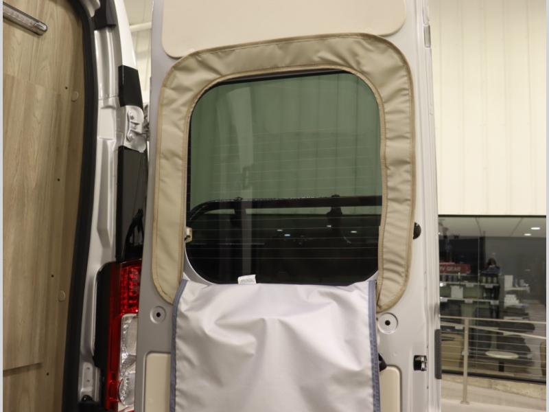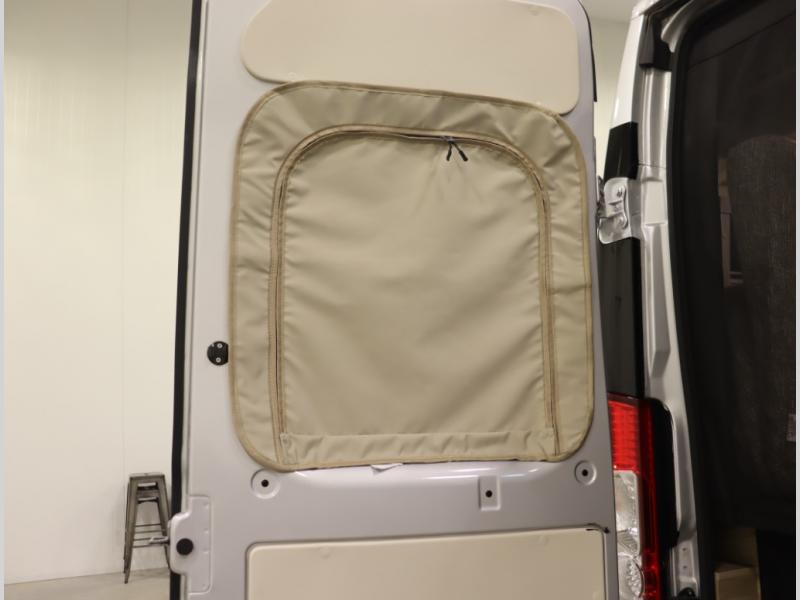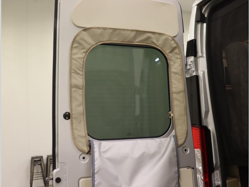 8. New thermal cab window coverings insulate the front cab of the van and provide near total blackout, with less than .5% of light intrusion
