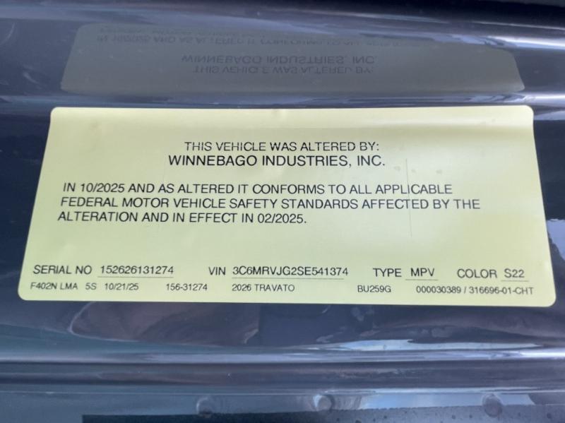 Adventure is calling, and the 2026 Winnebago Travato 59G is ready to answer. Designed for explorers who want flexibility, comfort, and efficiency, this versatile Class B motorhome makes every journey as enjoyable as the destination. Built on the proven Ram ProMaster chassis, the Travato delivers exceptional drivability, modern design, and all the comforts of home — packed neatly into a nimble, easy-to-maneuver camper van. Whether you’re heading to the mountains, the beach, or beyond the beaten path, the Travato 59G is your all-in-one travel companion.
