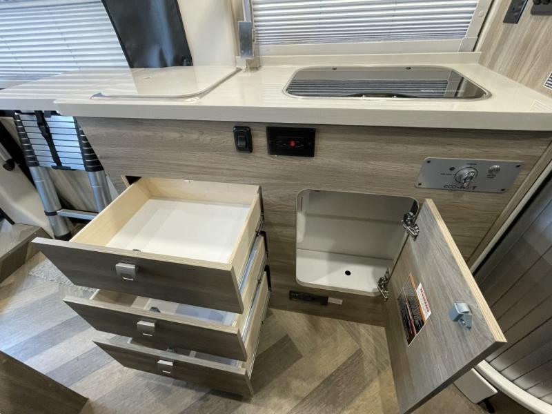The Travato 59G is more than just a motorhome — it’s your gateway to adventure. Powered by a 3.6L V6 gas engine with 280 horsepower and a 9-speed automatic transmission, this van delivers a smooth, responsive drive whether you’re navigating winding country roads or city streets. The innovative rear annex expands your living space, perfect for drying wet gear, creating an outdoor shower setup, or adding shade while relaxing outside.