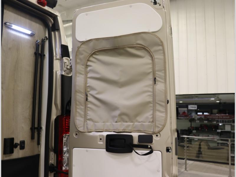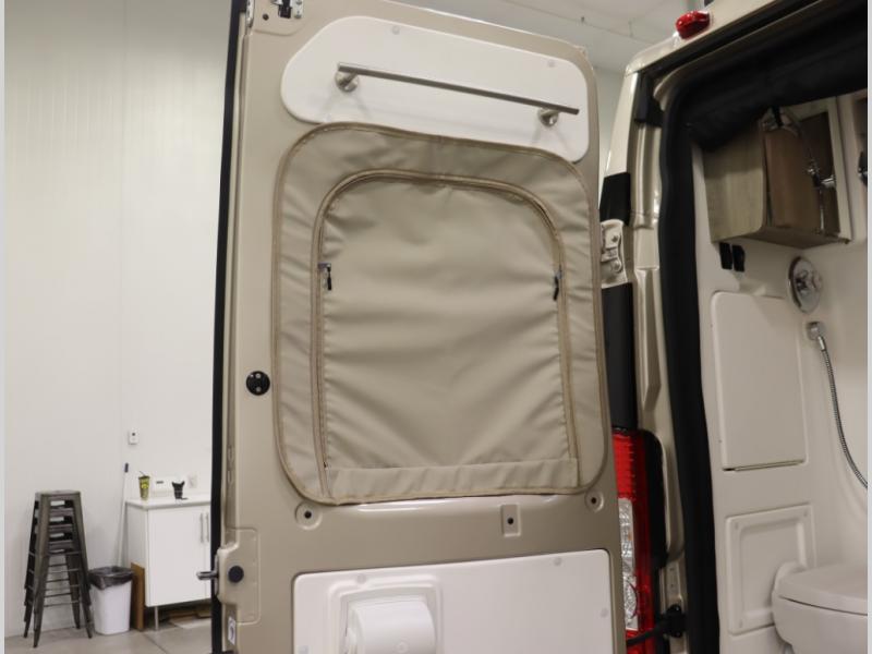 8. New thermal cab window coverings insulate the front cab of the van and provide near total blackout, with less than .5% of light intrusion
