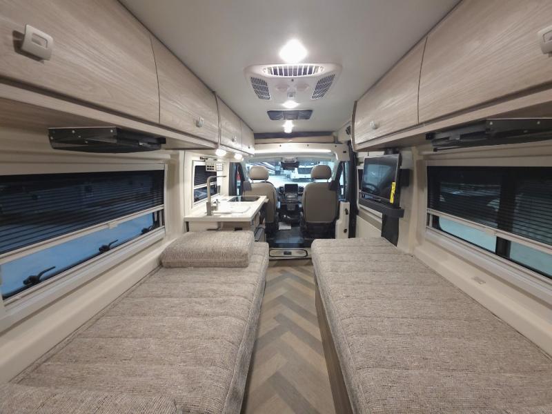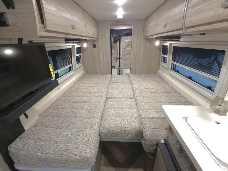 Twin Beds with Flex Bed System: Enjoy sleeping versatility with two twin beds that easily convert into a spacious 74" x 76" bed for ultimate relaxation on the road.