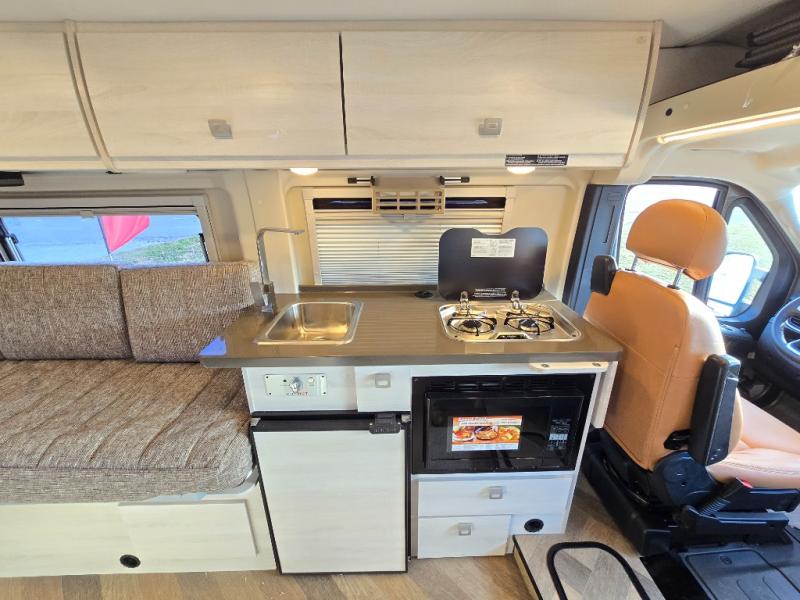 Each one of these Winnebago Travato Class B gas motorhomes are perfect for adventure seekers of all types! The rear annex extends your living space and gives you the versatility of hanging wet gear, using it as an outdoor shower, or an impromptu awning. They are powered by a Ram ProMaster 3.6L V6 gas engine with 280 HP and a 9-speed automatic transmission, and include a radio/rearview monitor system with navigation, USB ports, and more to make the drive easier than ever. The superior craftsmanship consists of a Truma Combi G Comfort Plus heating system that can run off of propane or electricity, aluminum running boards with logoed tread, ground-effect lighting and pet loop attachment so even your furry friends can come along. You will also find RAM Tough-Track Mounts throughout for your gear, tinted coach windows and blackout cassette shades for added privacy, plus a 24" HDTV and Bluetooth soundbar to ensure you'll never go bored!