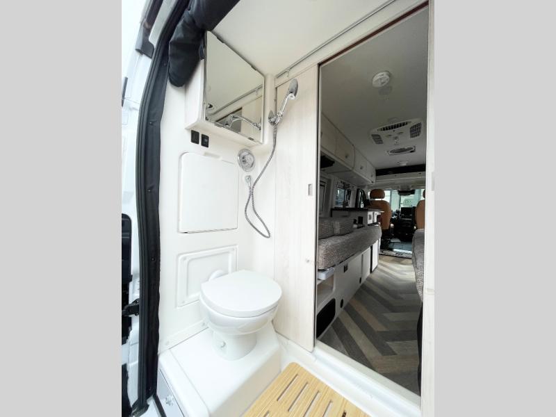 Each one of these Winnebago Travato Class B gas motorhomes are perfect for adventure seekers of all types! The rear annex extends your living space and gives you the versatility of hanging wet gear, using it as an outdoor shower, or an impromptu awning. They are powered by a Ram ProMaster 3.6L V6 gas engine with 280 HP and a 9-speed automatic transmission, and include a radio/rearview monitor system with navigation, USB ports, and more to make the drive easier than ever. The superior craftsmanship consists of a Truma Combi G Comfort Plus heating system that can run off of propane or electricity, aluminum running boards with logoed tread, ground-effect lighting and pet loop attachment so even your furry friends can come along. You will also find RAM Tough-Track Mounts throughout for your gear, tinted coach windows and blackout cassette shades for added privacy, plus a 24" HDTV and Bluetooth soundbar to ensure you'll never go bored!