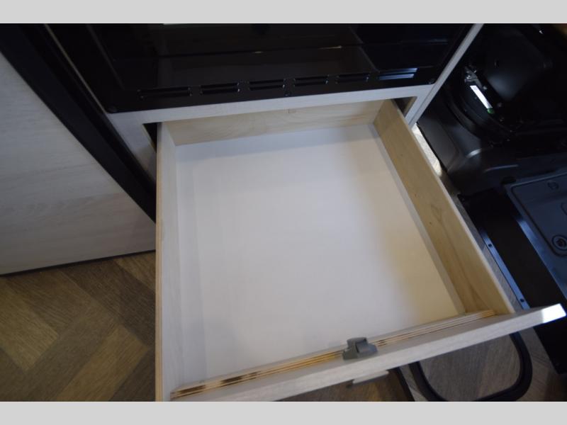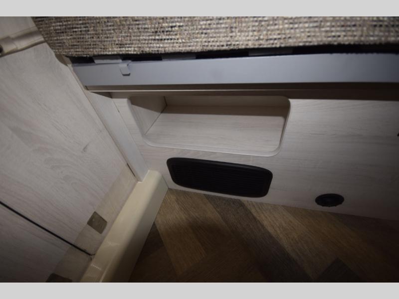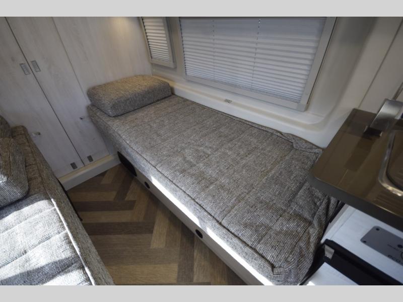 The adjustable and removable table with multiple mounting locations lets you dine, work, or relax wherever it feels right inside the coach.