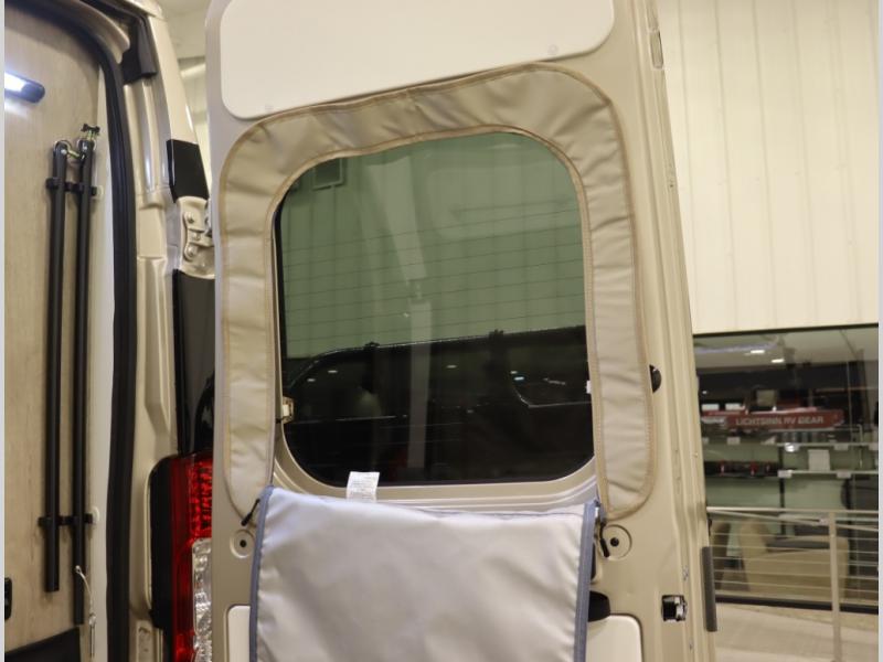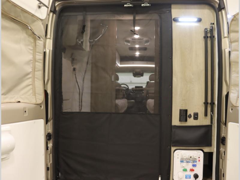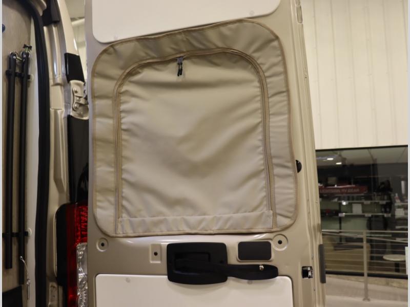 8. New thermal cab window coverings insulate the front cab of the van and provide near total blackout, with less than .5% of light intrusion
