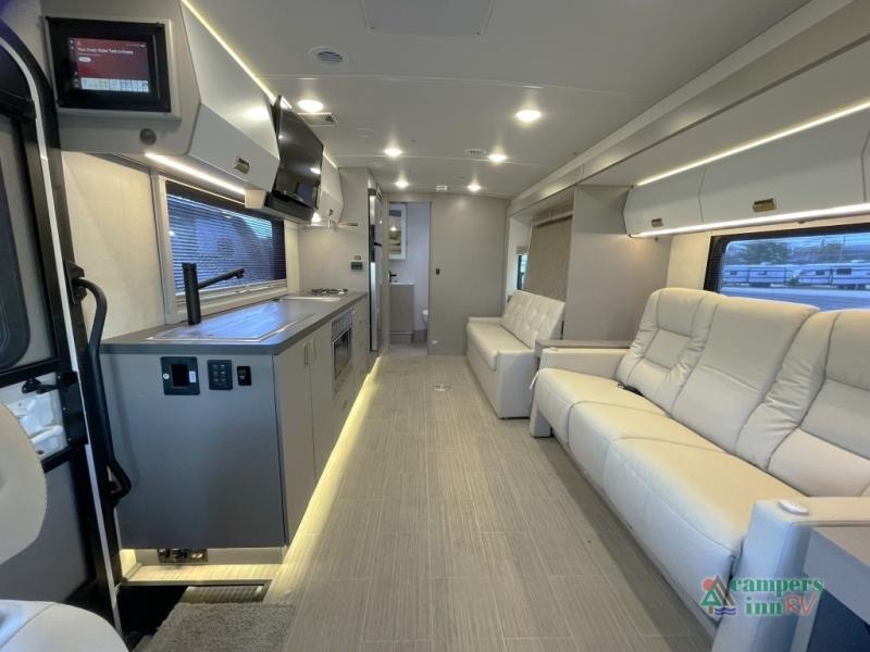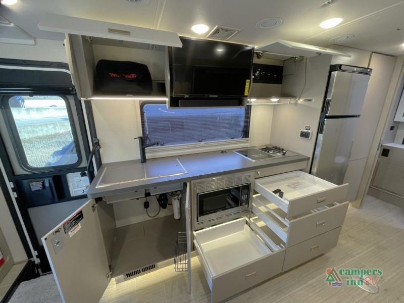 A couple or family will enjoy the look of the interior each time they take this View Class C diesel motorhome on the road.