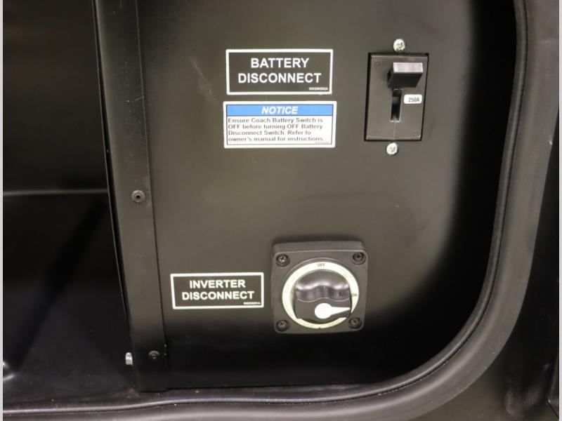 8. 320 ah Lithionics UL 1973 certified lithium battery, expandable and replenished with dual 120 watt, 240 watts total yet expandable if needed, solar, while the coach is in transit or when using shore line power or the generator
