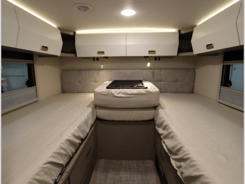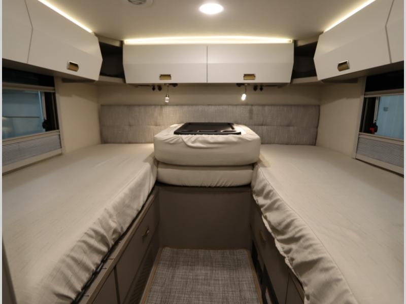 Completely Redesigned inside and out! A Rear Twin Bed Flex Bed Atop an Enormous Gear Garage with the Fuel Efficient Mercedes Benz!