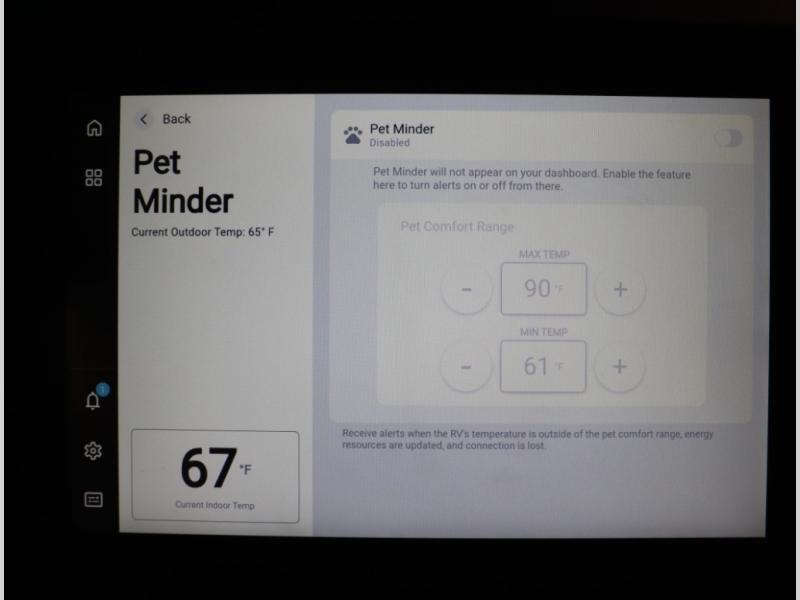 Winnebago Connect keeps a close eye on all vehicle systems, so you can stay focused on the adventure. It even helps you stay aware of climate when you’re away with pets in the RV to notify you as needed for power loss, automatic climate control, smart messaging on systems status, weather, and GPS location services.