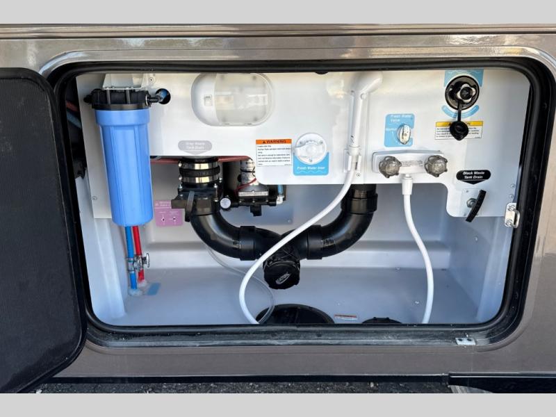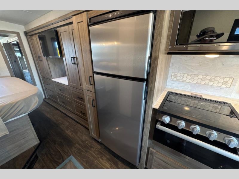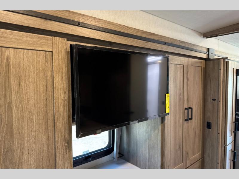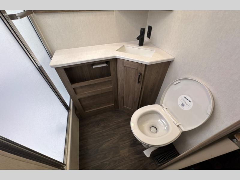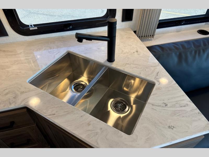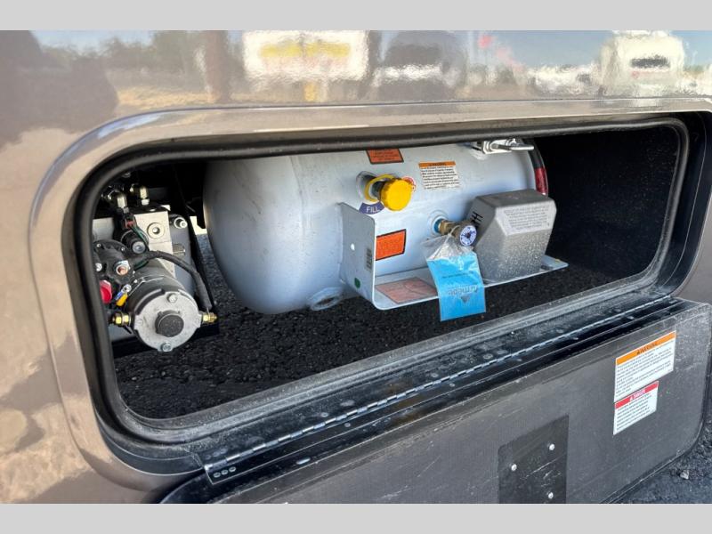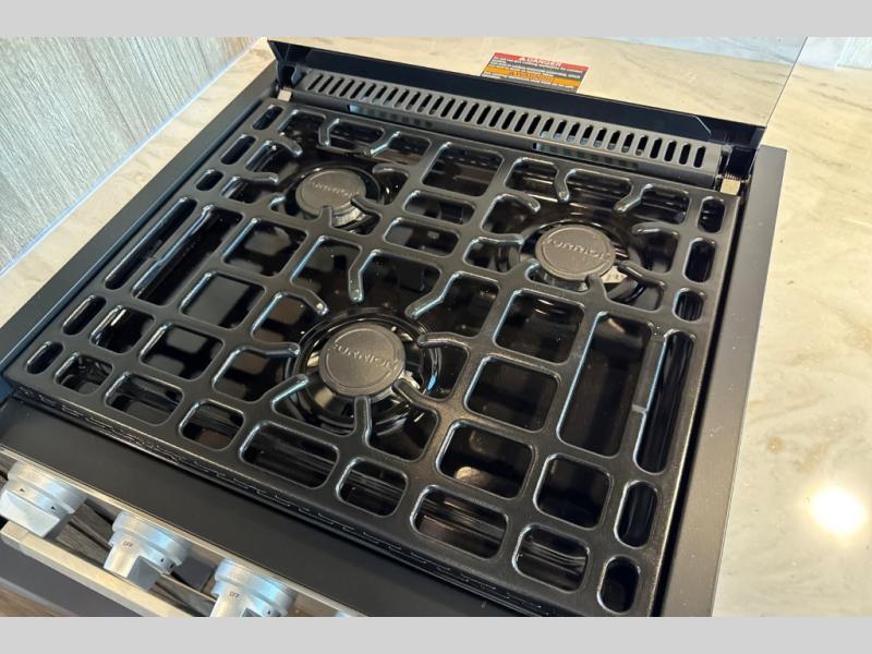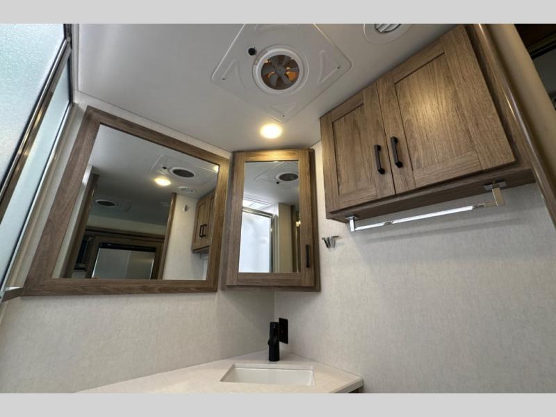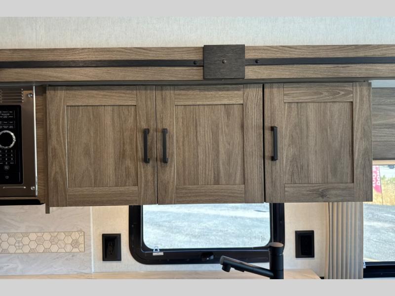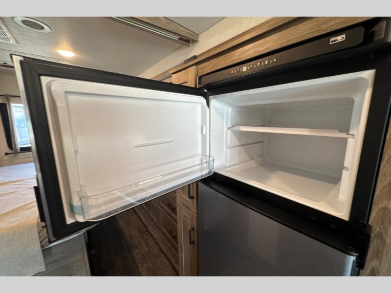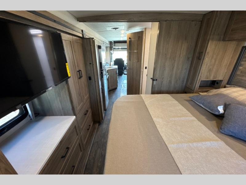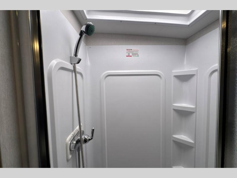 Head to your favorite destinations with this motorhome! You can travel with your spouse or bring an extra guest or two when you add the optional StudioLoft 50" x 80" powered bed above the cab. The 40" x 66" sofa bed can also transform into an extra sleeping space but if you don't need it then you can switch it out for the optional theater seating. Enjoy delicious home cooked meals while on the road with the three burner cooktop or head to the exterior kitchen to breathe in some fresh air while you cook. Eat your meals at the 42" x 70" dinette with Hi-Lo table and freshen up each morning in the full bathroom featuring a 26" x 38" shower. The rear private bedroom has a 72" x 75" king bed to lay your head on at night and wardrobes on either side of a storage area with a location for an optional TV to be added!