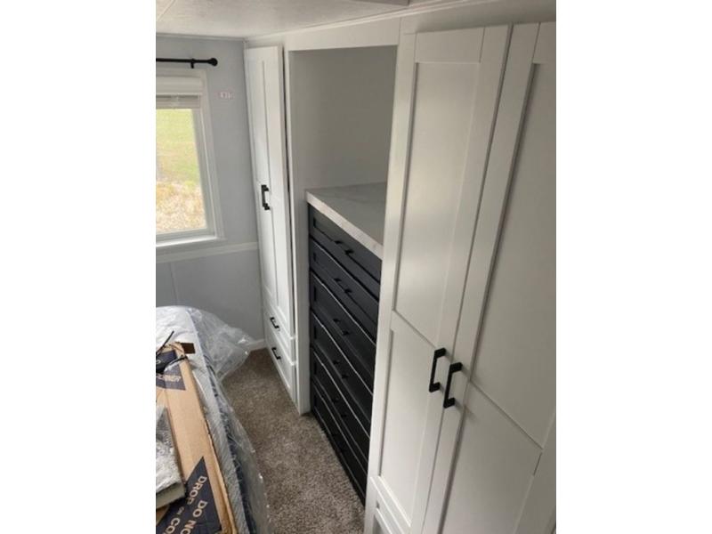 Every Timber Ridge park model by Woodland Park is built with superior construction using a 10" steel l-beam frame, 2 x 4 sidewall framing, 2 x 6 fascia, vinyl Low-E thermopane windows, insulated duct work with perimeter registers. and a poly mesh underbelly. The interior is just as impressive with hardwood cabinet doors in Chamfer Shaker style, custom painted cabinet doors, a patio door drape, faux wood blinds, a deep kitchen sink in stainless steel with pull down kitchen faucet, and so much more! Choose your destination then your favorite Timber Ridge, and start enjoying the good life!