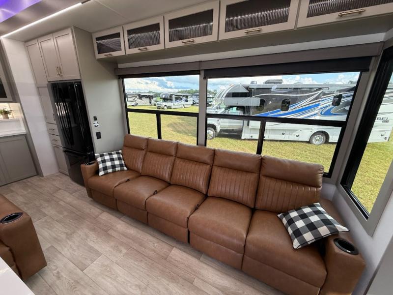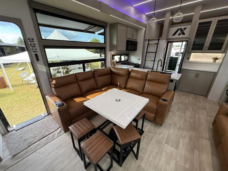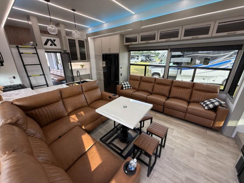 Traveling with a big crew? This unit features 12 reclining leather chairs to bring you the most comfort possible. Because here at Axiom, we understand that you're not just RVing, you're living.
