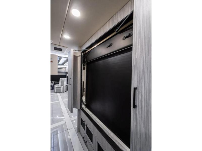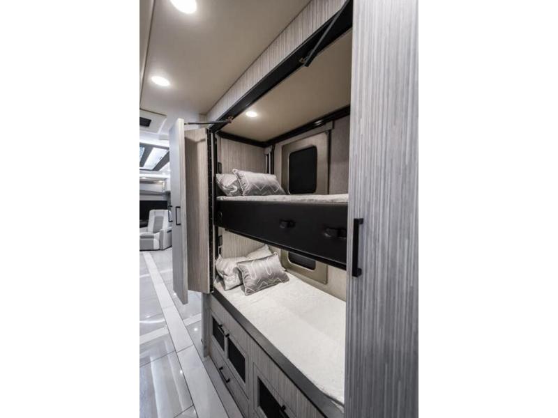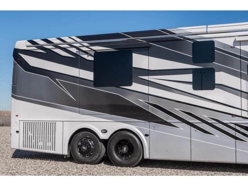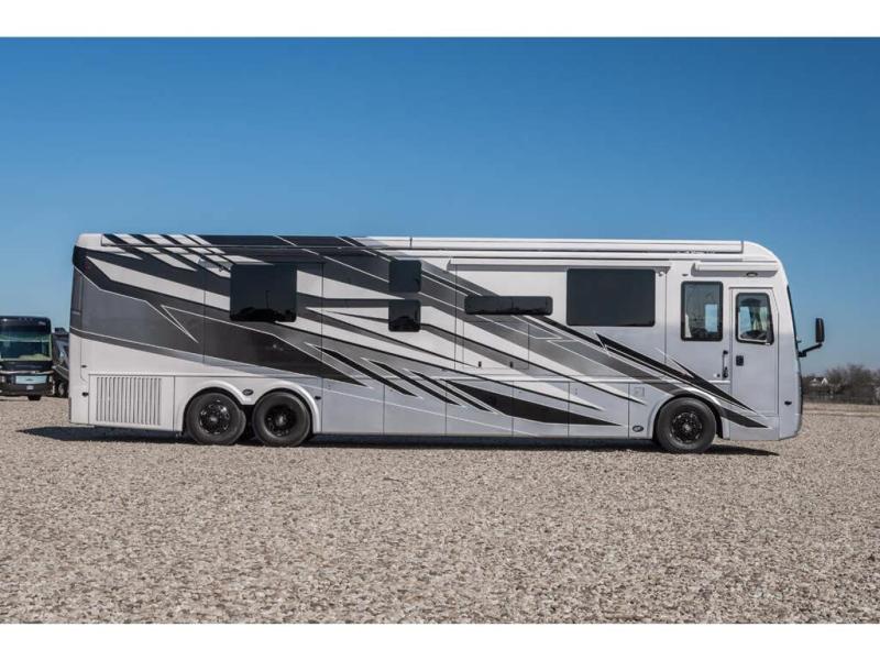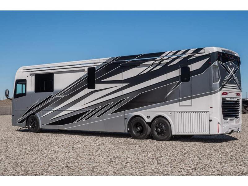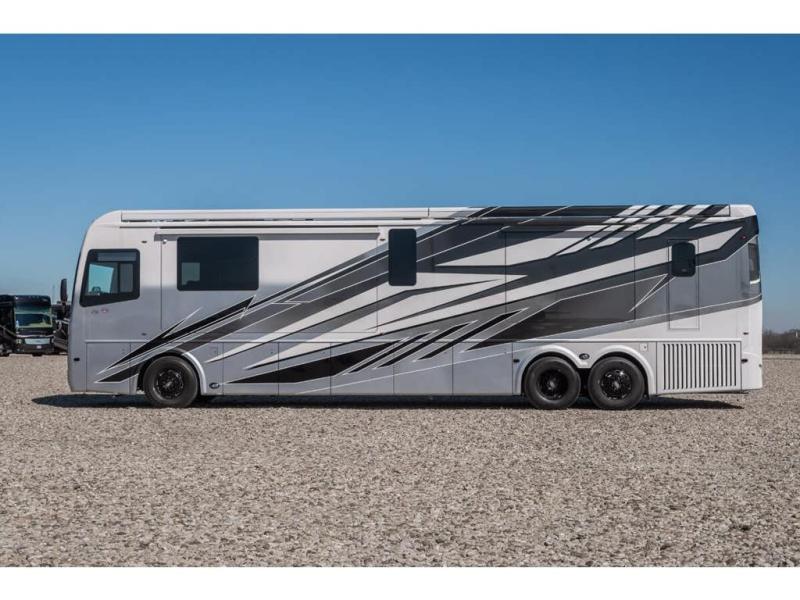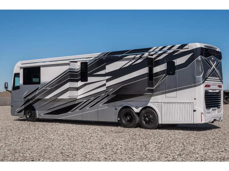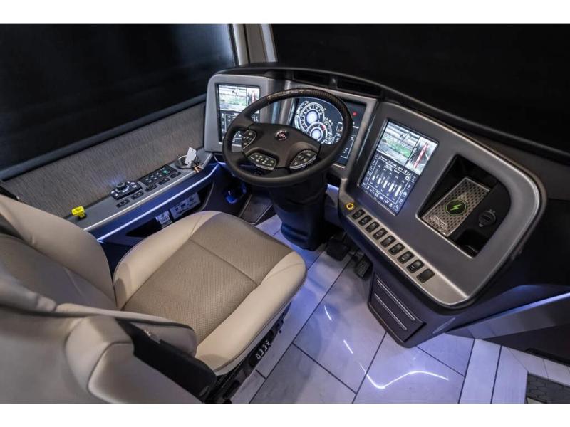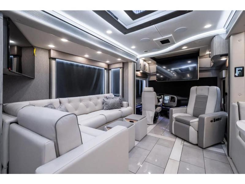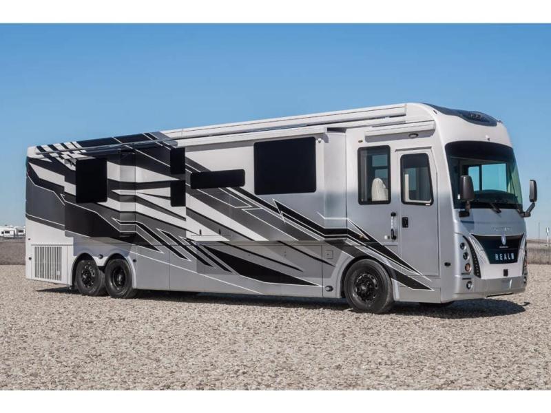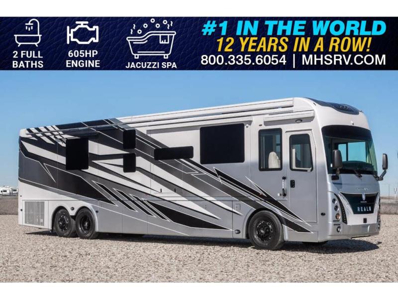 M.S.R.P. $1,799,910 - The 2027 Foretravel Realm Presidential takes the luxury motor coach market to all new heights and further propels the legacy of Foretravel. The Foretravel Realm stands alone as the finest motor coach of its kind available on the market today. It rides on Spartan's Premier K4 chassis, that is exclusive to Foretravel, offering incomparable ride, handling, and safety. This extraordinary motor coach is the Luxury Villa Bunk with Spa (LVB) floor plan with the all-new Majesty (Black) interior décor package that is paired perfectly with the Athena exterior paint scheme that can only be found on the Realm Presidential Series. Shop a huge selection of luxury diesel pusher motorhomes all at 1 location! Choose from American Coach Eagle – Dream – Entegra Coach Cornerstone – Anthem – Aspire – Fleetwood Palisade – Discovery LXE – Holiday Rambler Armada – Foretravel Realm – Foretravel Realm Presidential and more. We also buy and sell quality pre-owned models such Newmar King Aire – Essex – London Aire – Mountain Aire – Dutch Star - Tiffin Zephyr – Allegro Bus – Phaeton – Prevost Liberty Lady – Millennium - Marathon – Newell and much more. Visit MHSRV.com for our complete line-up and the sale prices that have made us the #1 volume selling motor home dealership in the world 12 years in a row! The LVB floor plan is also unlike that of any other luxury motor coach in the world, offering premier bunk accommodations and 2 full baths. The option that transforms this Realm into a Spa-like retreat is the ultra-high-end massaging tub in the master bath. The Kohler Archer® bath combines BubbleMassage™ and Bask® heated surface to create a soothing spa session. 120 air jets release thousands of heated air bubbles to cushion and massage your body allowing you to massage your back, midsection, and feet as well as control the intensity with 18 different levels. The tub is masterfully tiled and includes a large ledge and a flat-panel TV that is beautifully encased and angled downward for great visibility while using the tub or shower. You will also find a true flat floor design throughout the Realm Presidential Series including, not only Foretravel's premium flat floor slide-out rooms but also the bedroom to master bath transition. The Presidential Series also boasts a 600D Aqua Hot Hydronic Heating system. You will find the premier Valid digital dash with VDC control, along with the Valid air ride suspension, electronic suspension control with self-leveling feature, driver and passenger coach monitors, tire pressure sensors, beautiful full tile floors and back-splashes, ultra-high-end quartz counter tops throughout, premium brand refrigerator and convection microwave, LED accent lighting throughout, a beautiful curved entry way step, Executive entrance steps, a designer entry door with LED accent lighting, 4K QLED TVs where applicable, upgraded cab stereo and sub-woofer, heated and cooled leather pilot and co-pilot seats, recessed and upgraded ceiling features in the galley and bedroom, recessed cook top, an 8-camera system including 6 perimeter 360 Delta Mobile cameras for the ultimate in coach visibility, dual integrated power awnings, power entry door awning, exterior entertainment center, (2) electric sliding cargo trays, exterior freezer, full coach and multi-color LED ground effect lighting package, unmistakable full body paint exterior with Armor-Coat sprayed protection below windshield, chrome grill and accent package, (2) 3000 watt inverters, Gold Heat floor tile heating system, solar panel package, dishwasher drawer, 5.1 surround sound in living room and StarLink antenna. The Spartan K4 chassis is not only massive in stature but boasts a best-in-class Independent Front Suspension system, a passive steering rear tag axle for incomparable handling and maneuverability as well as the Performance Choice® anti-roll bar with selectable drive modes, and automatic traction control. You will know instantly, once behind the wheel of a Realm, that this chassis is truly a cut above all other luxury motor coach chassis. It is powered by a Cummins 605HP diesel. You will also find additional advanced safety features on a Realm like a fire suppression system for the engine, Tyron Bead-Lock wheel safety bands, and steel construction rather than aluminum found in the competition. You will also enjoy the ultimate in slide-out room fit and finish. These slides are undoubtedly head and shoulders above the competition. They feature pneumatic seals that provide a literal airtight seal completely around the entire slide-out room regardless of slide position for the premium in fit, finish, and function. They also feature a power drop-down flooring system that gives the Realm not only a flat-floor when extended, but a true flat-floor when retracted as well. (No uneven floor surfaces, damaging rollers, poorly sealed rubber gaskets, etc.) The Realm also features a flat floor bedroom to master bath transition. You won't find that in the competition; Nor will you find a *3-YEAR or 50K MILE SPARTAN NO-COST MAINTENANCE PLAN INCLUDED - (A Realm Exclusive) and a *2-YEAR or 24K MILE LIMITED WARRANTY. For more details contact Motor Home Specialist today. REALM, by definition, is a royal kingdom; a domain within which anything may occur, prevail, or dominate. The Realm of Dreams is here and available at Motor Home Specialist, the #1 Volume Selling Motor Home Dealership in the World. Visit MHSRV.com or call 800-335-6054 for complete details, photos, videos, brochures, and more. The Foretravel Realm Presidential Series... Your Kingdom Awaits.