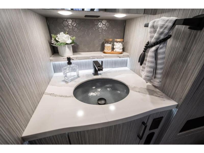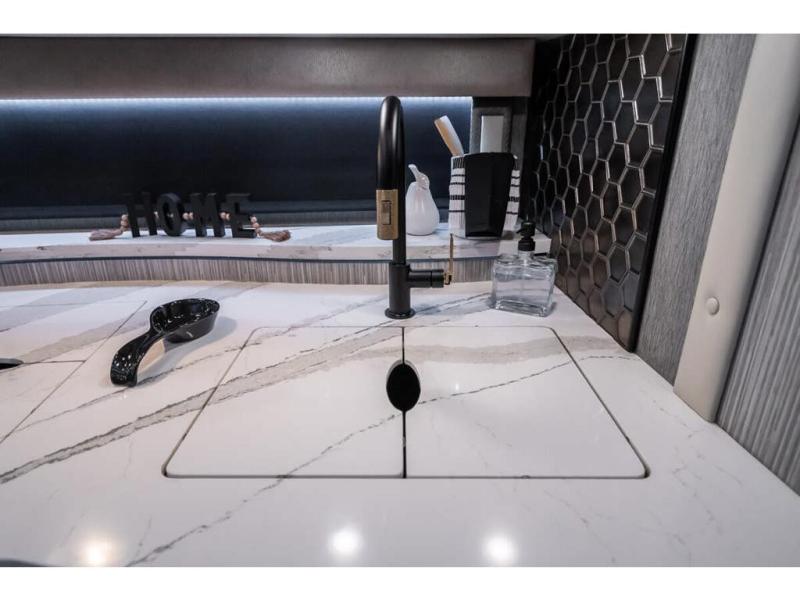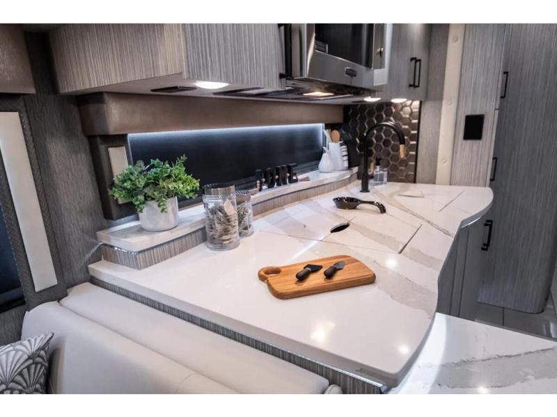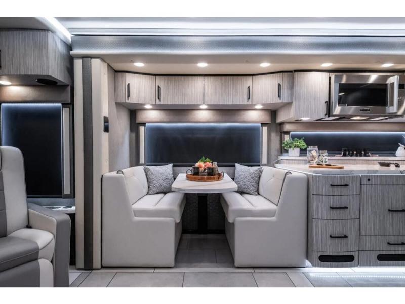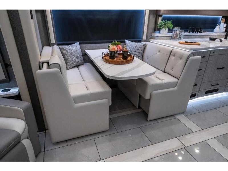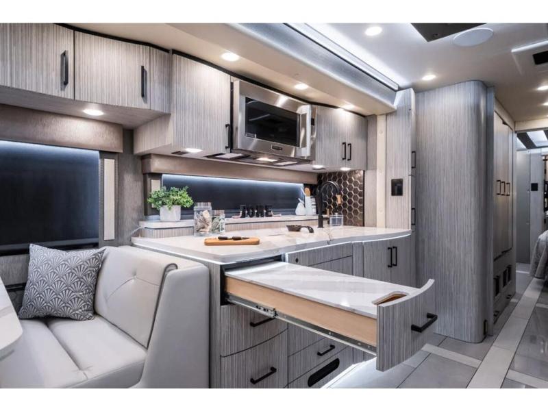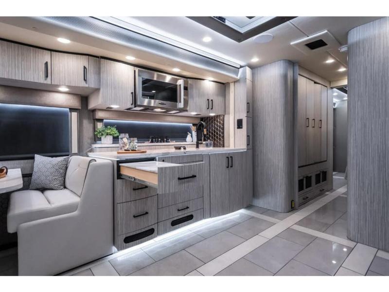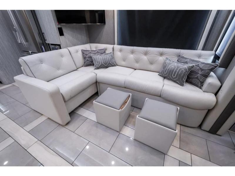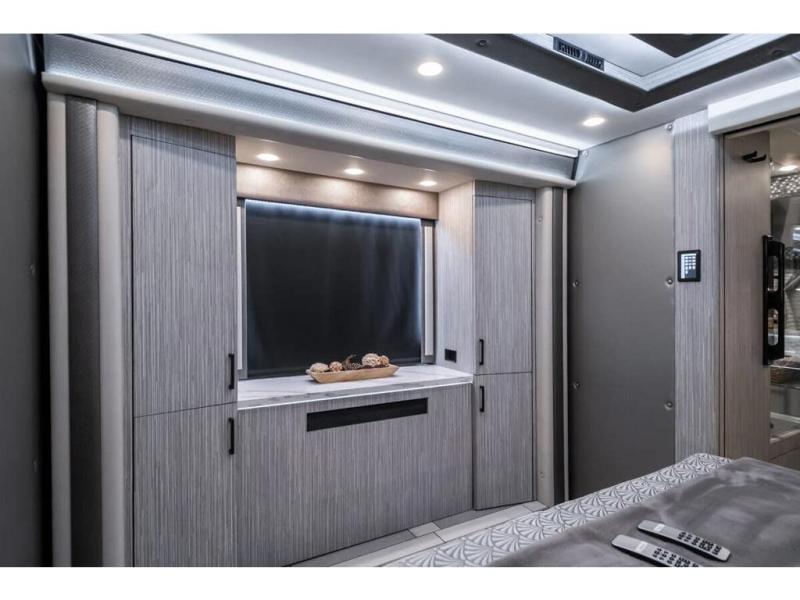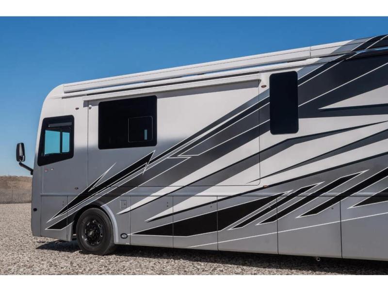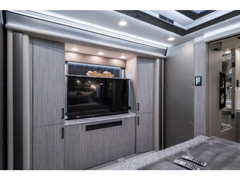 M.S.R.P. $1,799,910 - The 2027 Foretravel Realm Presidential takes the luxury motor coach market to all new heights and further propels the legacy of Foretravel. The Foretravel Realm stands alone as the finest motor coach of its kind available on the market today. It rides on Spartan's Premier K4 chassis, that is exclusive to Foretravel, offering incomparable ride, handling, and safety. This extraordinary motor coach is the Luxury Villa Bunk with Spa (LVB) floor plan with the all-new Majesty (Black) interior décor package that is paired perfectly with the Athena exterior paint scheme that can only be found on the Realm Presidential Series. Shop a huge selection of luxury diesel pusher motorhomes all at 1 location! Choose from American Coach Eagle – Dream – Entegra Coach Cornerstone – Anthem – Aspire – Fleetwood Palisade – Discovery LXE – Holiday Rambler Armada – Foretravel Realm – Foretravel Realm Presidential and more. We also buy and sell quality pre-owned models such Newmar King Aire – Essex – London Aire – Mountain Aire – Dutch Star - Tiffin Zephyr – Allegro Bus – Phaeton – Prevost Liberty Lady – Millennium - Marathon – Newell and much more. Visit MHSRV.com for our complete line-up and the sale prices that have made us the #1 volume selling motor home dealership in the world 12 years in a row! The LVB floor plan is also unlike that of any other luxury motor coach in the world, offering premier bunk accommodations and 2 full baths. The option that transforms this Realm into a Spa-like retreat is the ultra-high-end massaging tub in the master bath. The Kohler Archer® bath combines BubbleMassage™ and Bask® heated surface to create a soothing spa session. 120 air jets release thousands of heated air bubbles to cushion and massage your body allowing you to massage your back, midsection, and feet as well as control the intensity with 18 different levels. The tub is masterfully tiled and includes a large ledge and a flat-panel TV that is beautifully encased and angled downward for great visibility while using the tub or shower. You will also find a true flat floor design throughout the Realm Presidential Series including, not only Foretravel's premium flat floor slide-out rooms but also the bedroom to master bath transition. The Presidential Series also boasts a 600D Aqua Hot Hydronic Heating system. You will find the premier Valid digital dash with VDC control, along with the Valid air ride suspension, electronic suspension control with self-leveling feature, driver and passenger coach monitors, tire pressure sensors, beautiful full tile floors and back-splashes, ultra-high-end quartz counter tops throughout, premium brand refrigerator and convection microwave, LED accent lighting throughout, a beautiful curved entry way step, Executive entrance steps, a designer entry door with LED accent lighting, 4K QLED TVs where applicable, upgraded cab stereo and sub-woofer, heated and cooled leather pilot and co-pilot seats, recessed and upgraded ceiling features in the galley and bedroom, recessed cook top, an 8-camera system including 6 perimeter 360 Delta Mobile cameras for the ultimate in coach visibility, dual integrated power awnings, power entry door awning, exterior entertainment center, (2) electric sliding cargo trays, exterior freezer, full coach and multi-color LED ground effect lighting package, unmistakable full body paint exterior with Armor-Coat sprayed protection below windshield, chrome grill and accent package, (2) 3000 watt inverters, Gold Heat floor tile heating system, solar panel package, dishwasher drawer, 5.1 surround sound in living room and StarLink antenna. The Spartan K4 chassis is not only massive in stature but boasts a best-in-class Independent Front Suspension system, a passive steering rear tag axle for incomparable handling and maneuverability as well as the Performance Choice® anti-roll bar with selectable drive modes, and automatic traction control. You will know instantly, once behind the wheel of a Realm, that this chassis is truly a cut above all other luxury motor coach chassis. It is powered by a Cummins 605HP diesel. You will also find additional advanced safety features on a Realm like a fire suppression system for the engine, Tyron Bead-Lock wheel safety bands, and steel construction rather than aluminum found in the competition. You will also enjoy the ultimate in slide-out room fit and finish. These slides are undoubtedly head and shoulders above the competition. They feature pneumatic seals that provide a literal airtight seal completely around the entire slide-out room regardless of slide position for the premium in fit, finish, and function. They also feature a power drop-down flooring system that gives the Realm not only a flat-floor when extended, but a true flat-floor when retracted as well. (No uneven floor surfaces, damaging rollers, poorly sealed rubber gaskets, etc.) The Realm also features a flat floor bedroom to master bath transition. You won't find that in the competition; Nor will you find a *3-YEAR or 50K MILE SPARTAN NO-COST MAINTENANCE PLAN INCLUDED - (A Realm Exclusive) and a *2-YEAR or 24K MILE LIMITED WARRANTY. For more details contact Motor Home Specialist today. REALM, by definition, is a royal kingdom; a domain within which anything may occur, prevail, or dominate. The Realm of Dreams is here and available at Motor Home Specialist, the #1 Volume Selling Motor Home Dealership in the World. Visit MHSRV.com or call 800-335-6054 for complete details, photos, videos, brochures, and more. The Foretravel Realm Presidential Series... Your Kingdom Awaits.