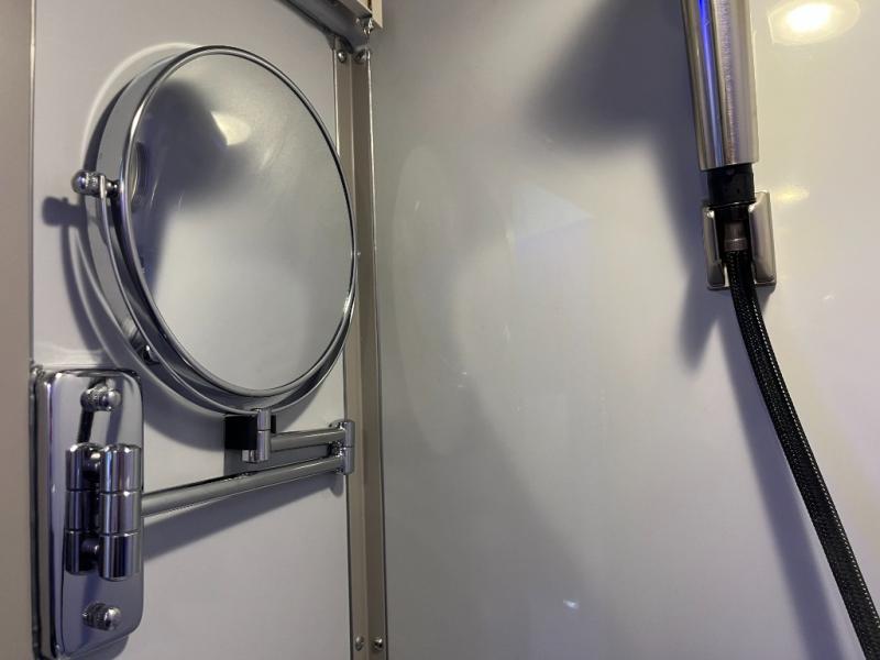 Outside, the Strada-ion AWD Tour continues to impress with sleek styling, a custom fiberglass body kit, and a power awning that creates a comfortable outdoor living space. With luxury craftsmanship, cutting-edge technology, and all-wheel-drive capability, the Grech Strada-ion Tour delivers an exceptional travel experience for couples seeking a high-end touring motorhome.
