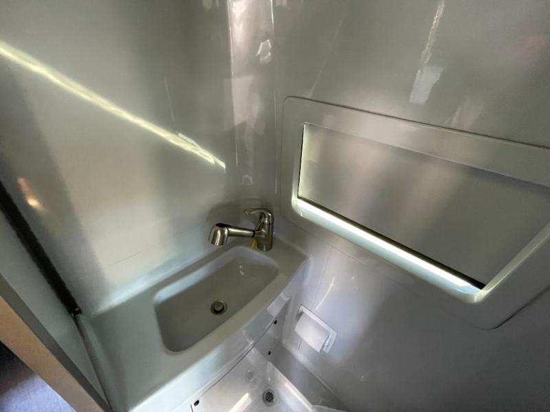 Inside, you’ll enjoy a memory foam power sofa bed that converts easily for restful nights, a fully appointed galley with solid surface countertop, refrigerator/freezer combo, induction cooktop, and a wet bath with shower and toilet — all designed for life on the road.