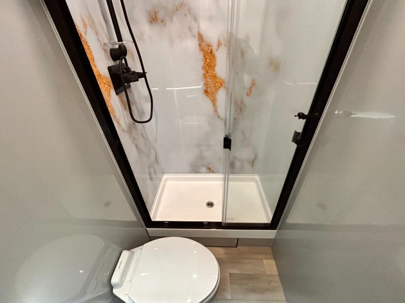- BATHROOM: ELONGATED PORCELAIN TOILET, IROK PREMIUM ACRYLIC SHOWER SURROUND W/