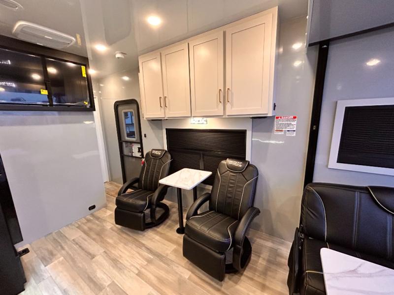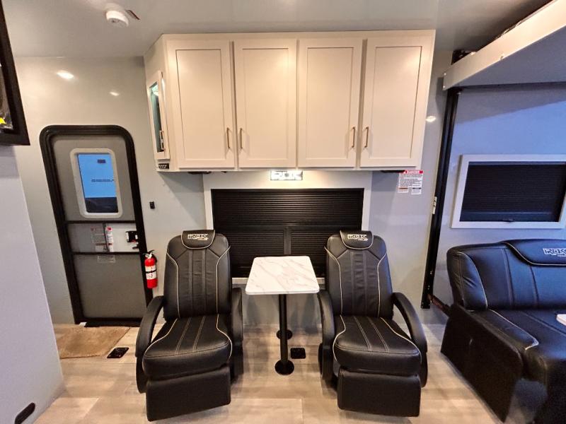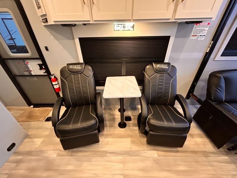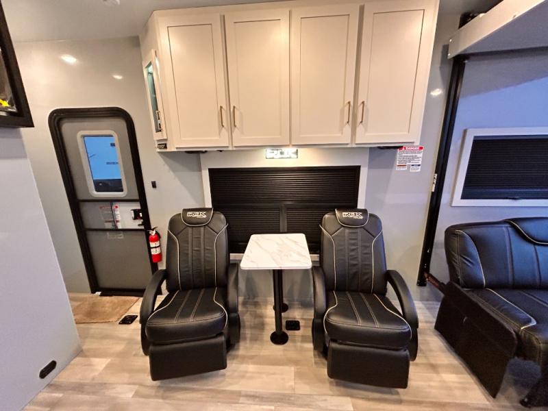 - (2) CAPTAIN CHAIRS + COCKTAIL TABLE W/ BAY WINDOW & OVERHEAD STORAGE PASSENGER SIDE