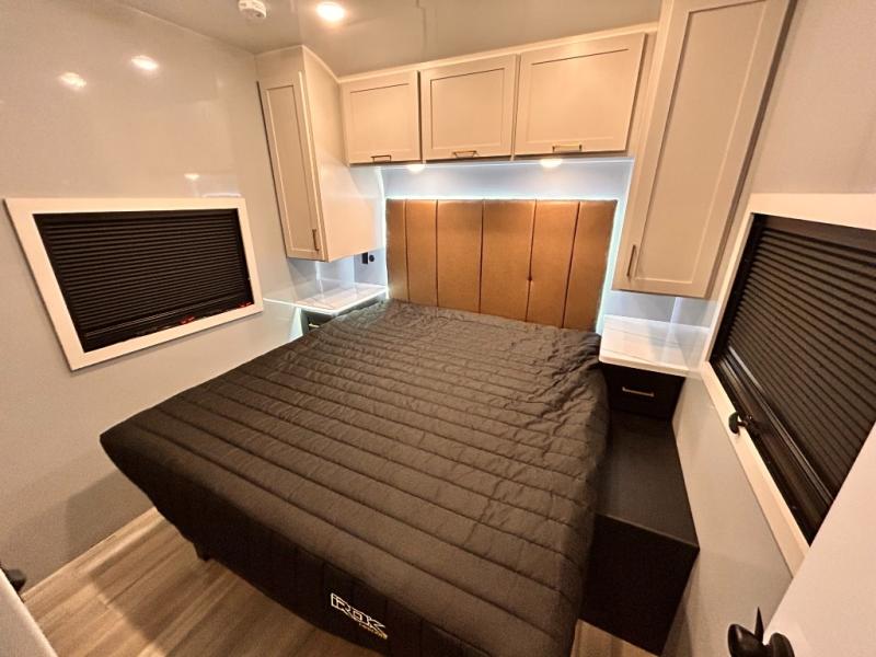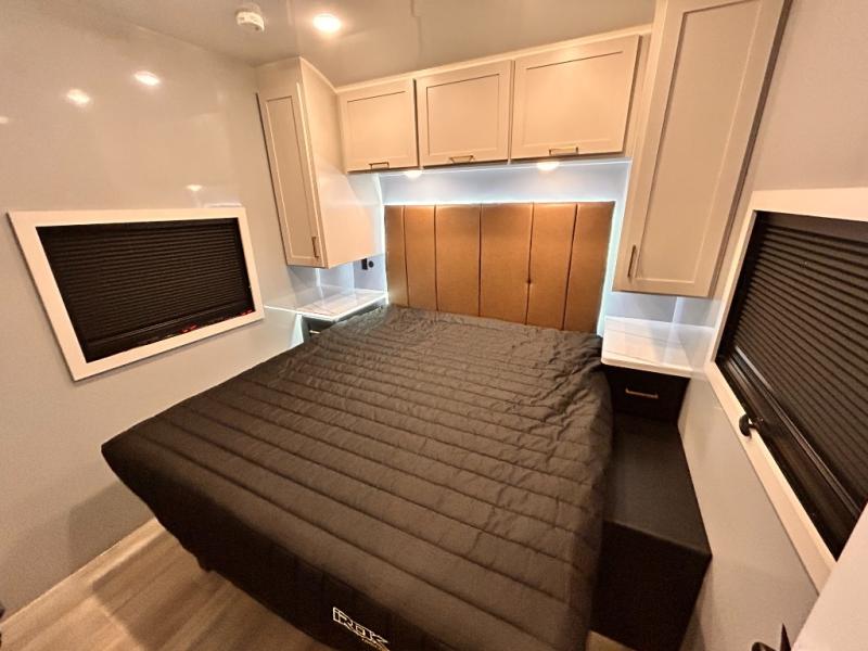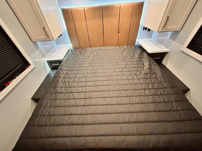 - BEDROOM SUITE: KING IROK MATTRESS W/ HEADBOARD & FLIP-UP STORAGE BELOW BED, DUAL