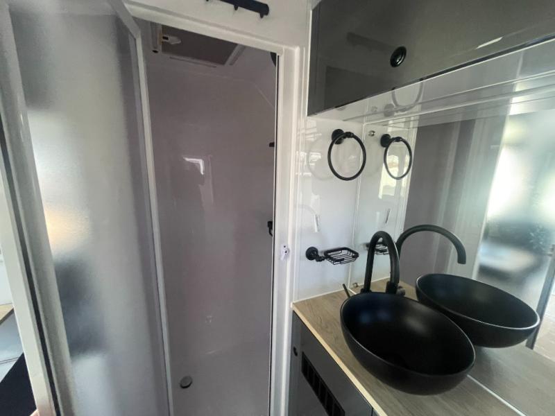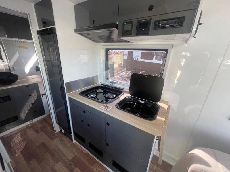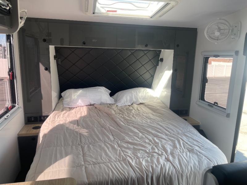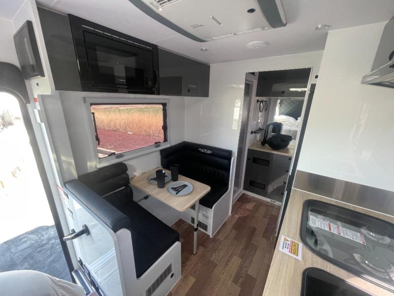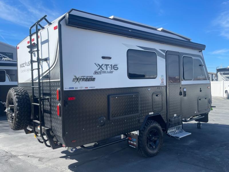 Everything you love in the XT16HR Island, but with more off-grid features! There is 800Ah of Renogy power, 700 watts of solar power, 12V outlets and so much more! Get a good night's rest on the island bed and convertible dinette, and keep your bellies filled with delicious home cooked meals prepared either indoors with the propane cooktop, internal refrigerator, and plumbed glass lid sink or at the external stainless steel slide out with propane cooktop and washboard sink with plumbed hot and cold water supply. The full bath includes a cassette toilet and a separate hot/cold plumbed shower, plus there is a hot/cold external shower that includes a wall-mounted shower tent for even more convenience.
