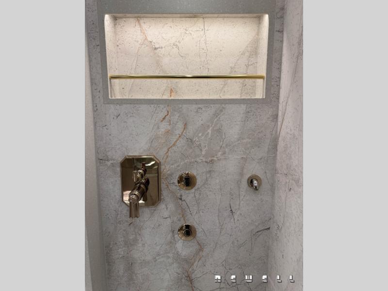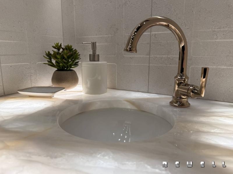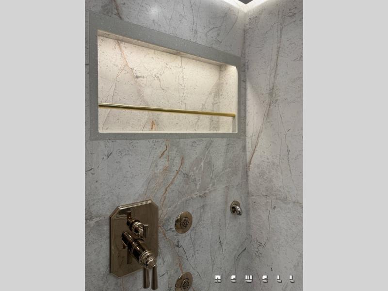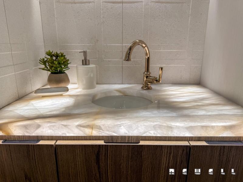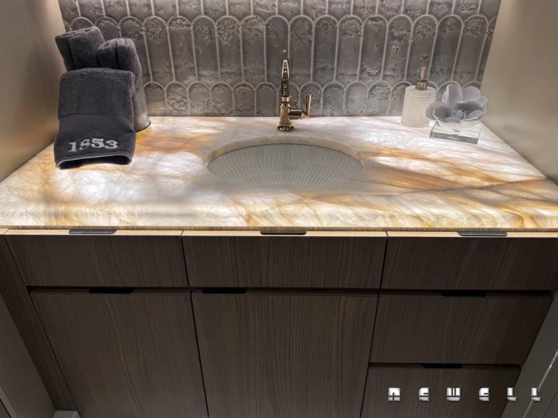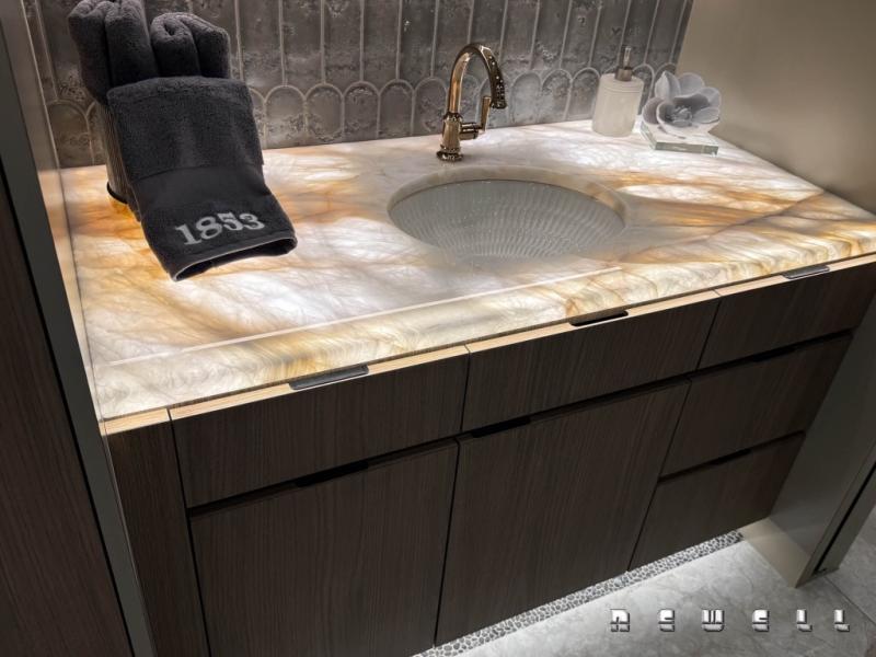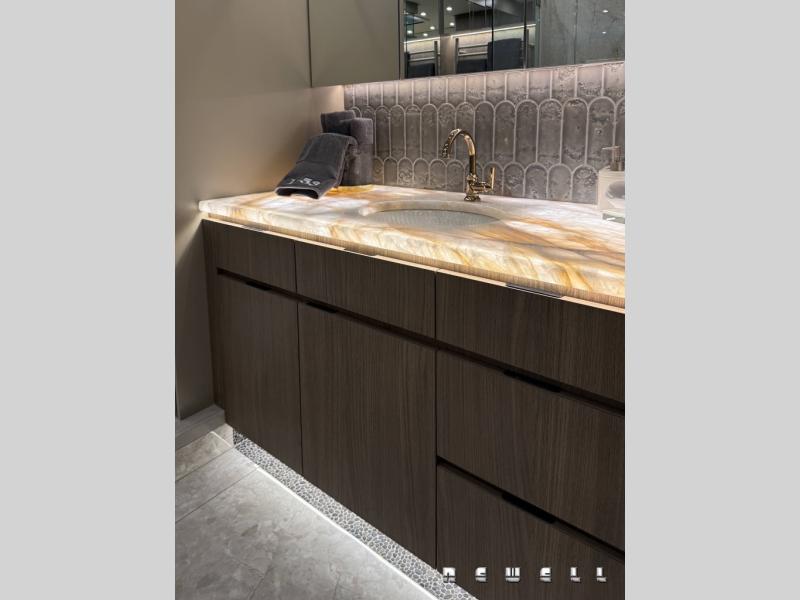 Underlit premium quartz in mid and master bathroom