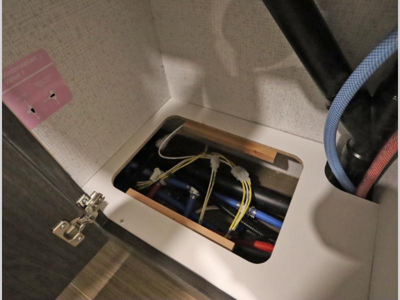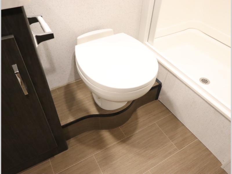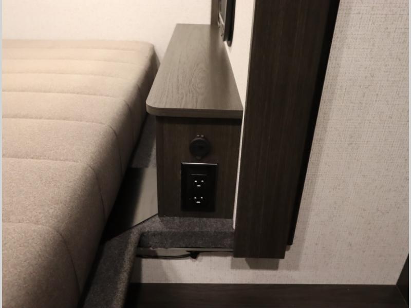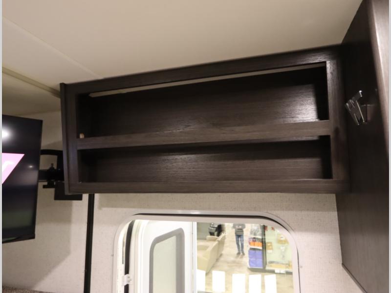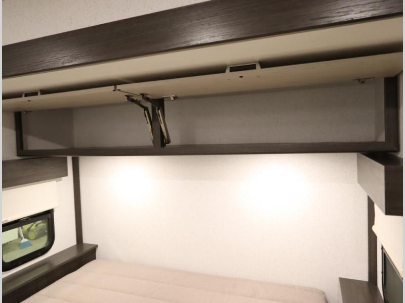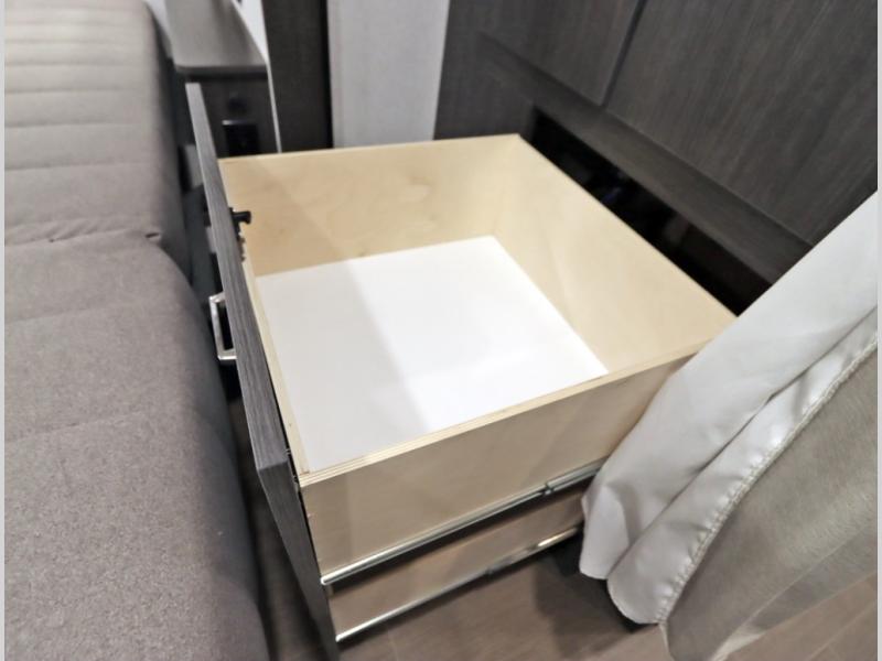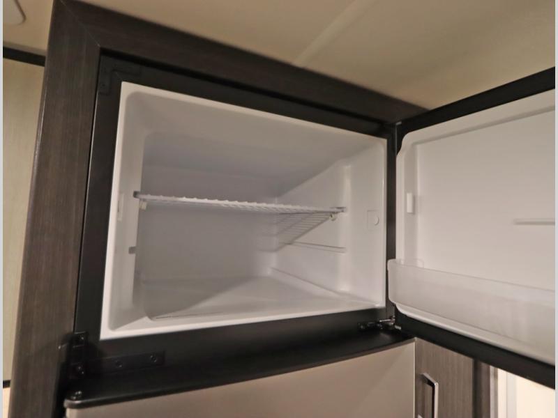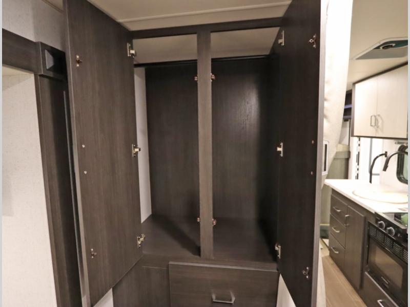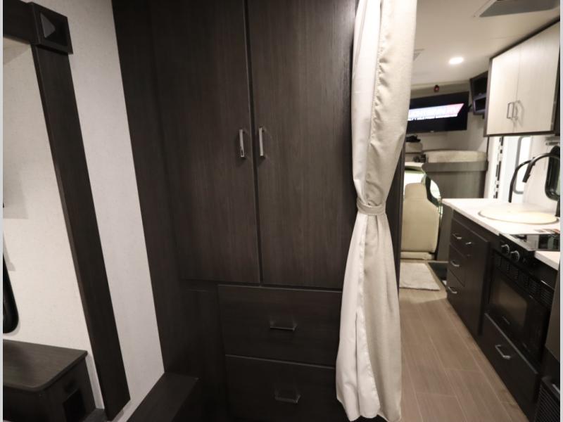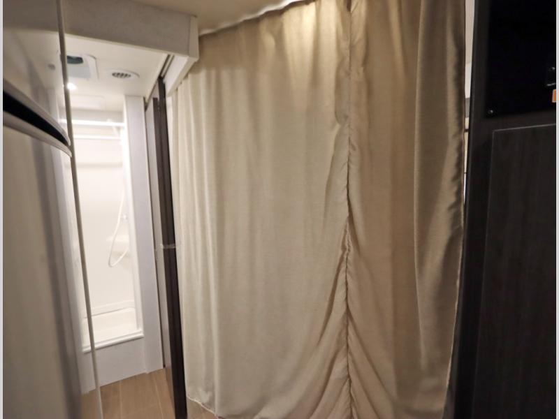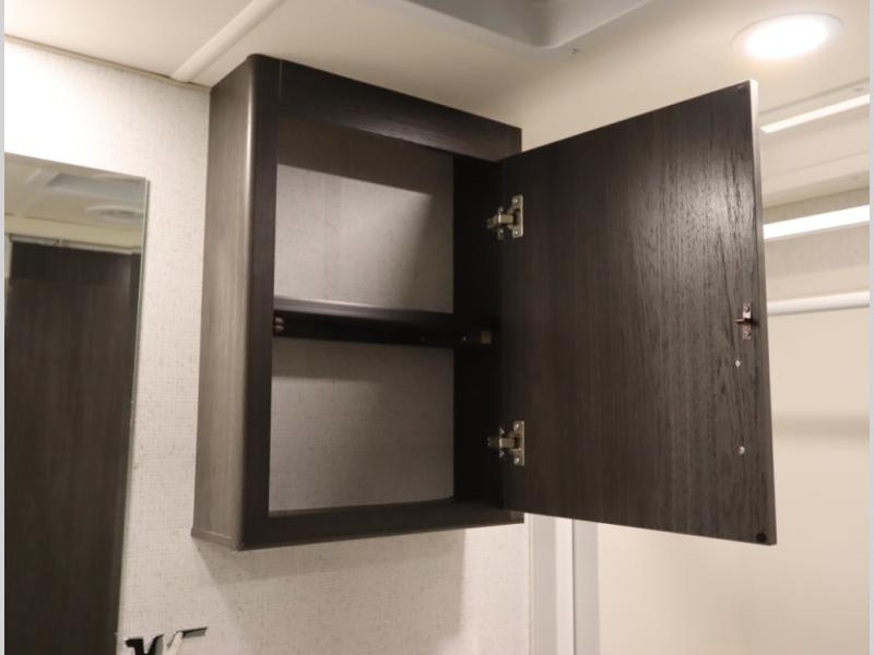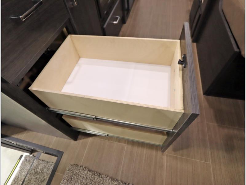 Convenient Amenities: The convection microwave with a built-in air fryer saves space, while flat floor designs enhance movement throughout the coach.