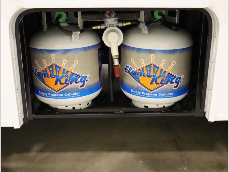 Versatile Storage Solutions: The RV includes multiple compartments & removable LP tanks to facilitate refueling & trip flexibility. It also has an 8,000 lb hitch for towing bikes, kayaks, & more.