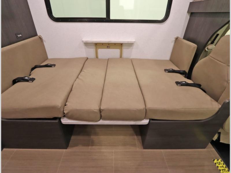 Durability & Safety: Constructed with Winnebago's Legendary Superstructure, it features a one-piece curved fiberglass roof, reinforced Azdel Composite Thermo-Panel sidewalls, & child-friendly safety belts for secure travel.