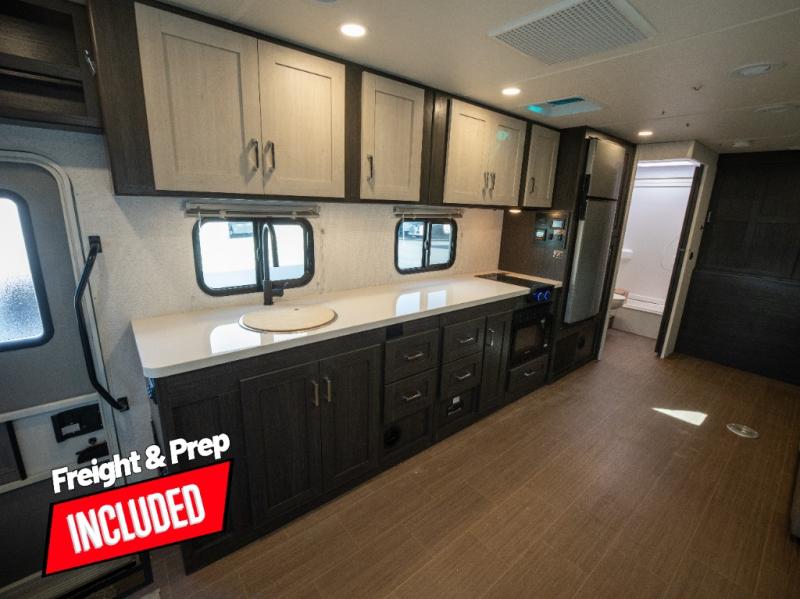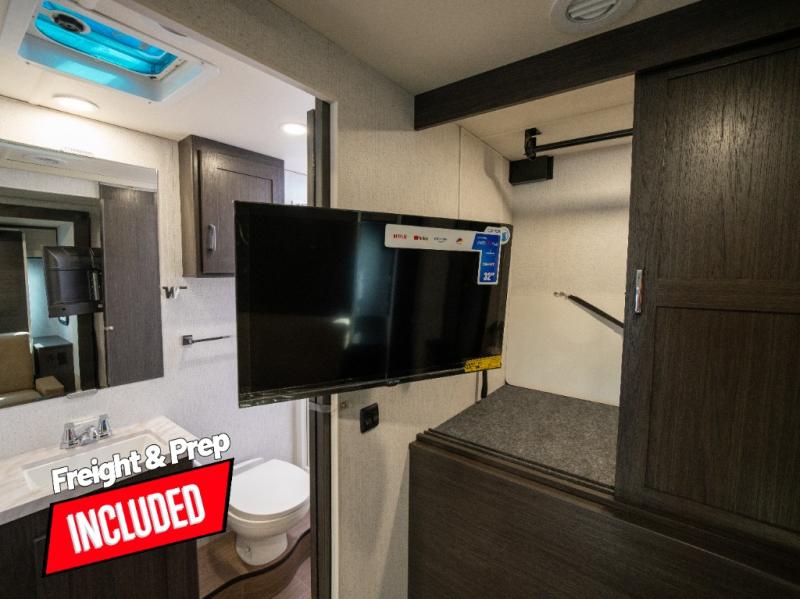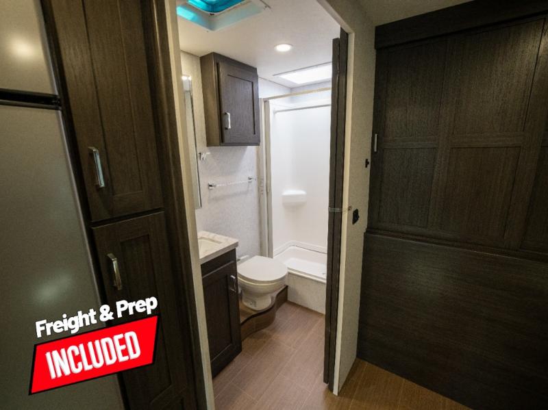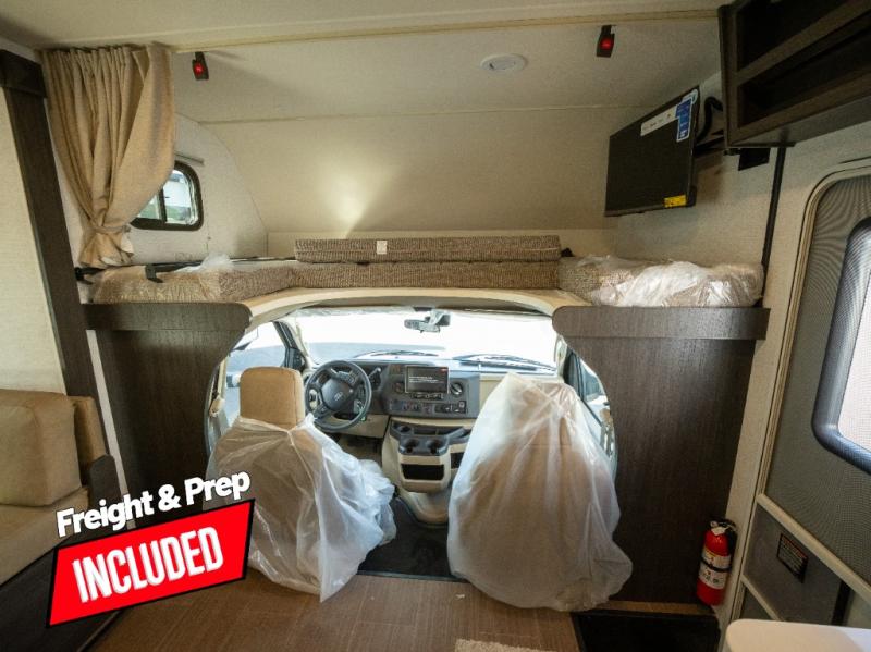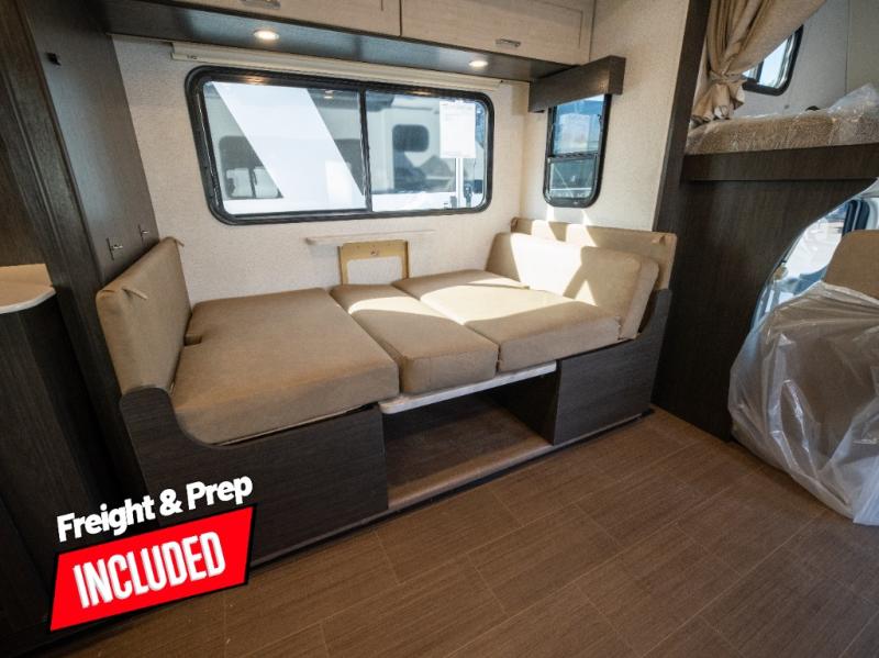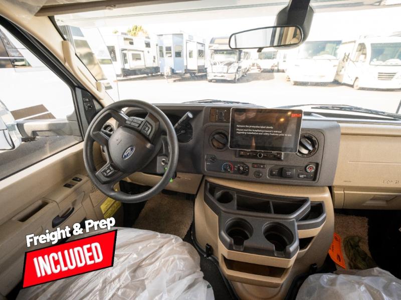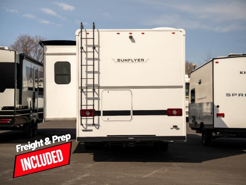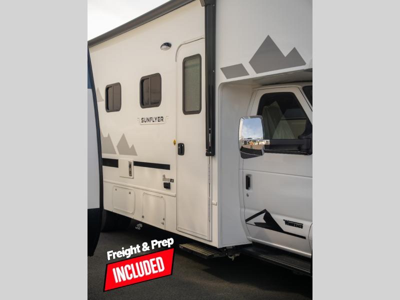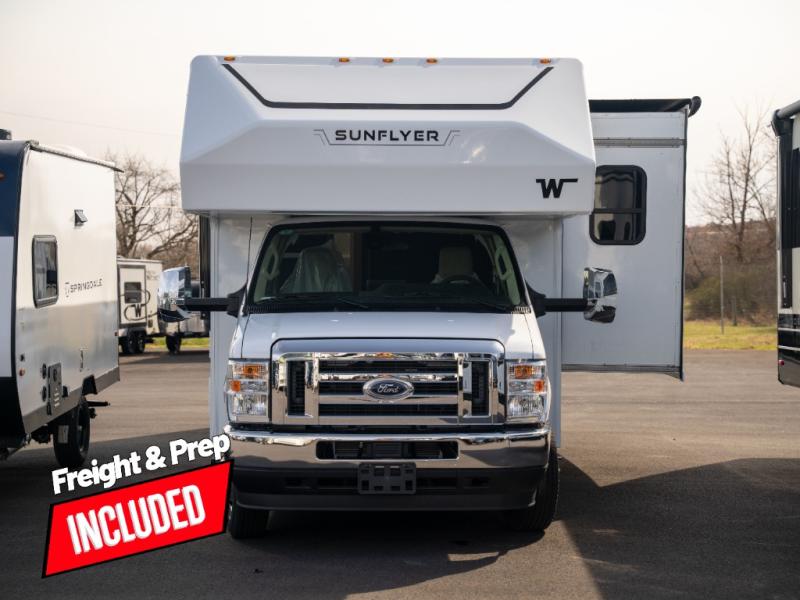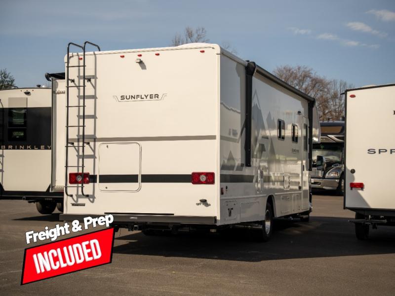 With any Winnebago Sunflyer Class C gas motorhome, you get a confident, road-ready build that’s focused on real-world travel ease and long-term durability. Standard highlights across the lineup include a Ford chassis, an 8,000 lb. trailer hitch, 4-wheel ABS brakes, LED high-performance headlamps, a 7-pin trailer wiring harness connector, premium high-gloss fiberglass skin, a molded front cap, a powered patio awning with LED lighting, and solar prep. The result is a Class C that feels composed on the highway and effortless at the campsite, with the kind of practical exterior and chassis-minded upgrades that make every trip smoother before you even step inside.