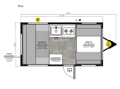 17 ft 8 in in length, weighs 1805 lbs lbs, sleeps up to 5, many colors ...more