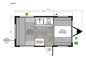 14 ft 4 in in length, weighs 1235 lbs lbs, sleeps up to 4, many colors ...more