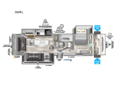 Rear Living Area, Kitchen Island, 38 ft 7 in in length, weighs 9464 lbs lbs, sleeps up to 5, , many colors ...more