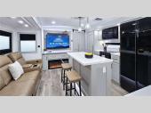 Rear Living Area, Kitchen Island, 33 ft 11 in in length, weighs 7486 lbs lbs, sleeps up to 5, , many colors ...more