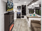 Rear Living Area, Kitchen Island, 33 ft 5 in in length, weighs 7320 lbs lbs, sleeps up to 5, , many colors ...more