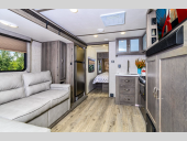 Two Entry/Exit Doors, Rear Kitchen, 28 ft 6 in in length, weighs 4815 lbs lbs, sleeps up to 4, , many colors ...more