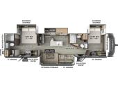 Two Full Baths, Two Entry/Exit Doors, 43 ft 1 in in length, weighs 9942 lbs lbs, sleeps up to 7, , many colors ...more