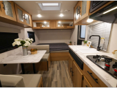 U Shaped Dinette, 20 ft 11 in in length, weighs 3199 lbs lbs, sleeps up to 4, many colors ...more