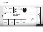 Rear Bath, 17 ft 6 in in length, weighs 2202 lbs lbs, sleeps up to 2, , many colors ...more
