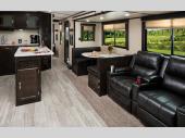 Outdoor Kitchen, Rear Kitchen, 31 ft 10 in in length, weighs 6638 lbs lbs, sleeps up to 3, , many colors ...more