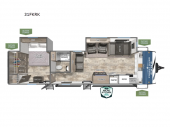 Outdoor Kitchen, Two Entry/Exit Doors, 33 ft 7 in in length, weighs 7468 lbs lbs, sleeps up to 4, , many colors ...more