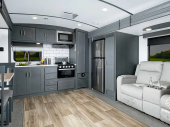 Rear Living Area, Kitchen Island, 34 ft 0 in in length, weighs 7260 lbs lbs, sleeps up to 5, , many colors ...more