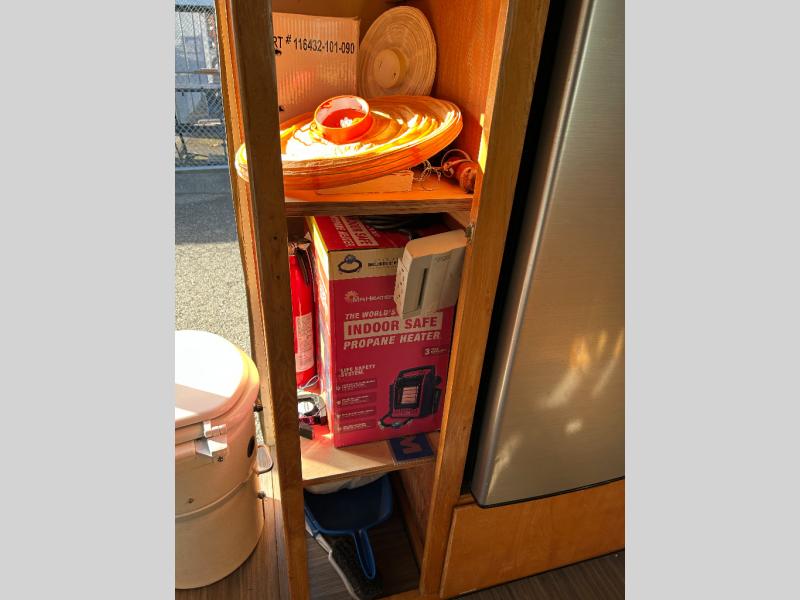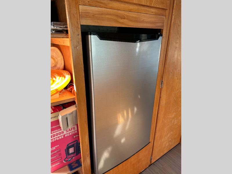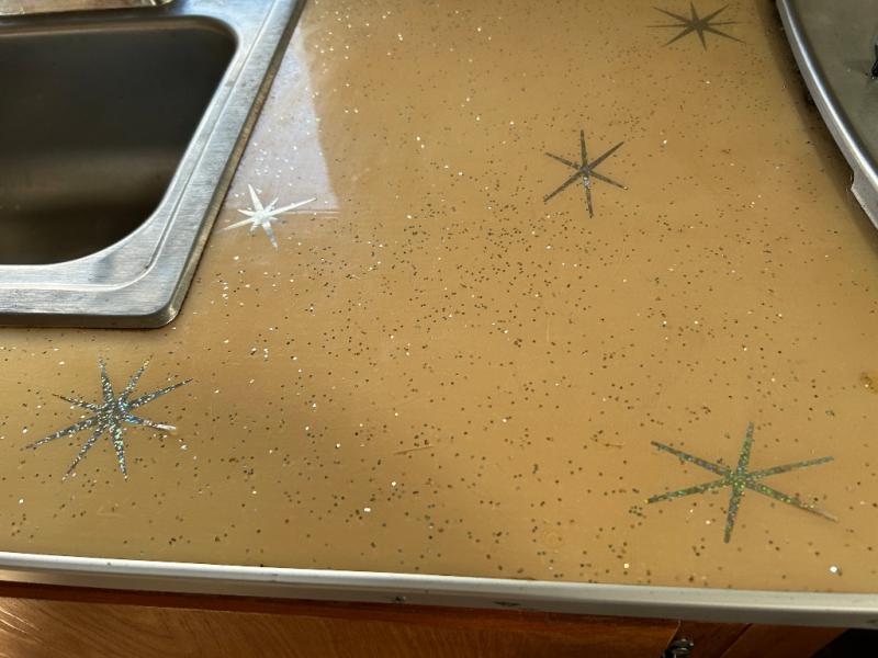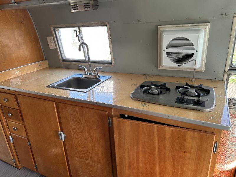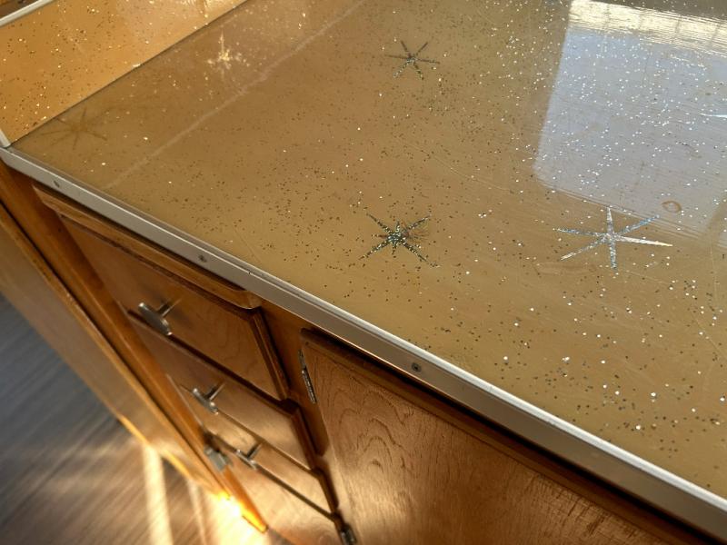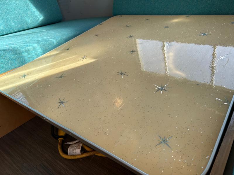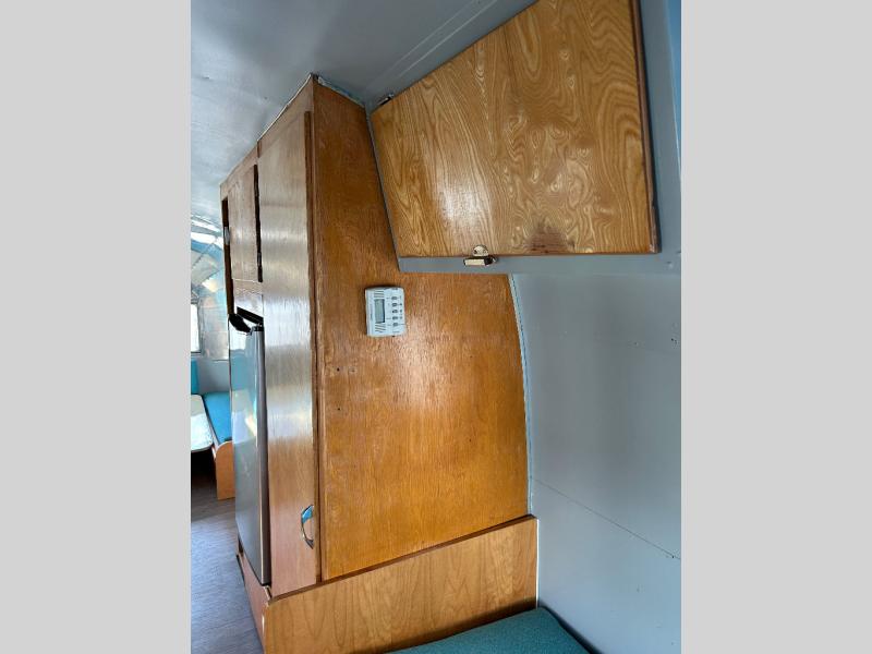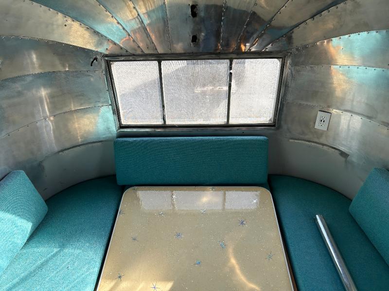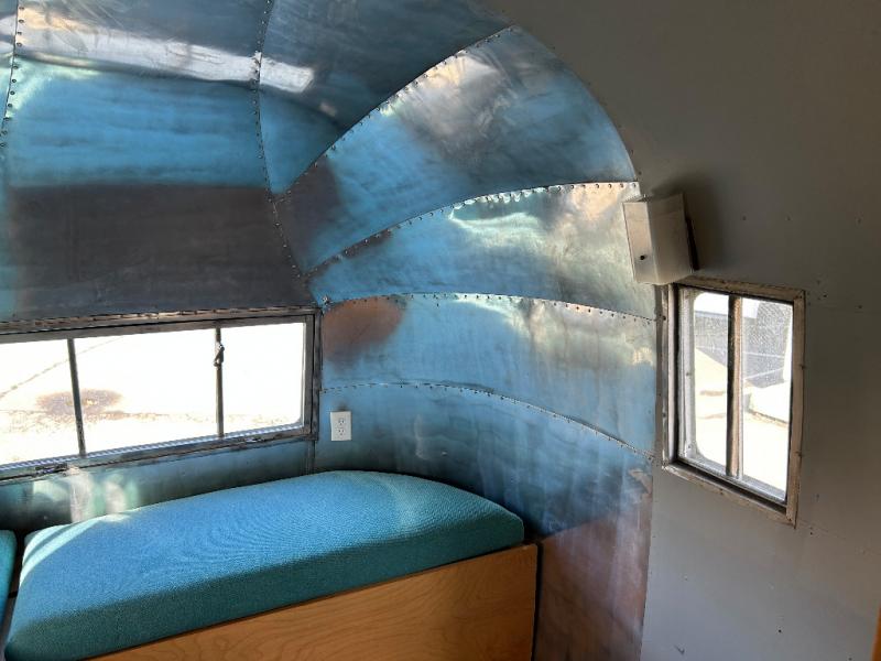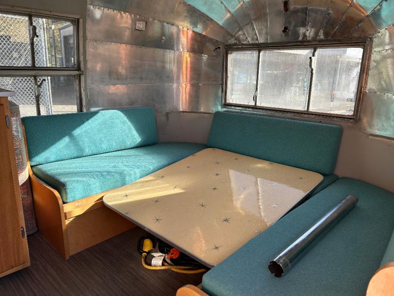 The restoration was started and on the interior it has new retro Dinette table and matching Retro Galley countertop and All New retro fabric covered seat cushions And new Marmoleum Floor Covering. Some of the interior finishes have been re finished, and some of the Aluminum skin has been polished inside and out. All New appliances installed Plus a Airhead brand compost toilet you can install.